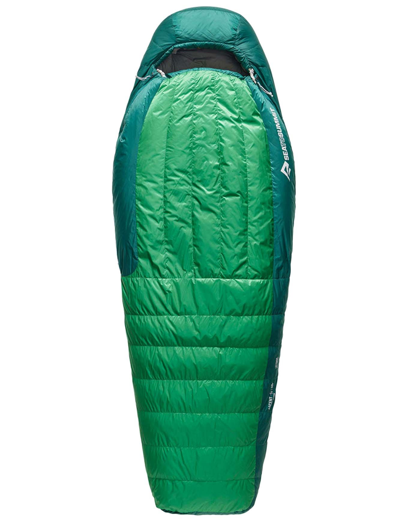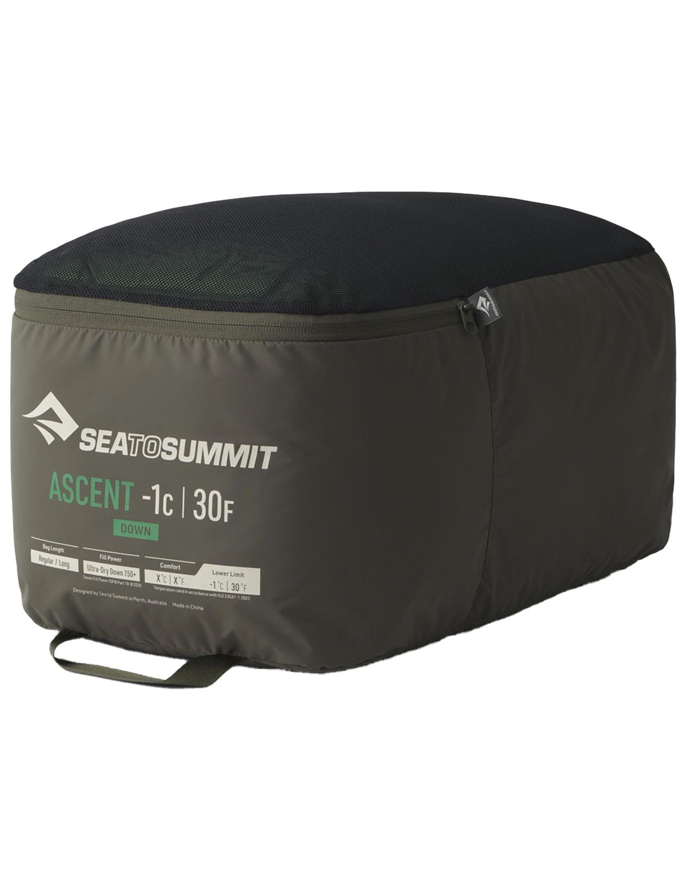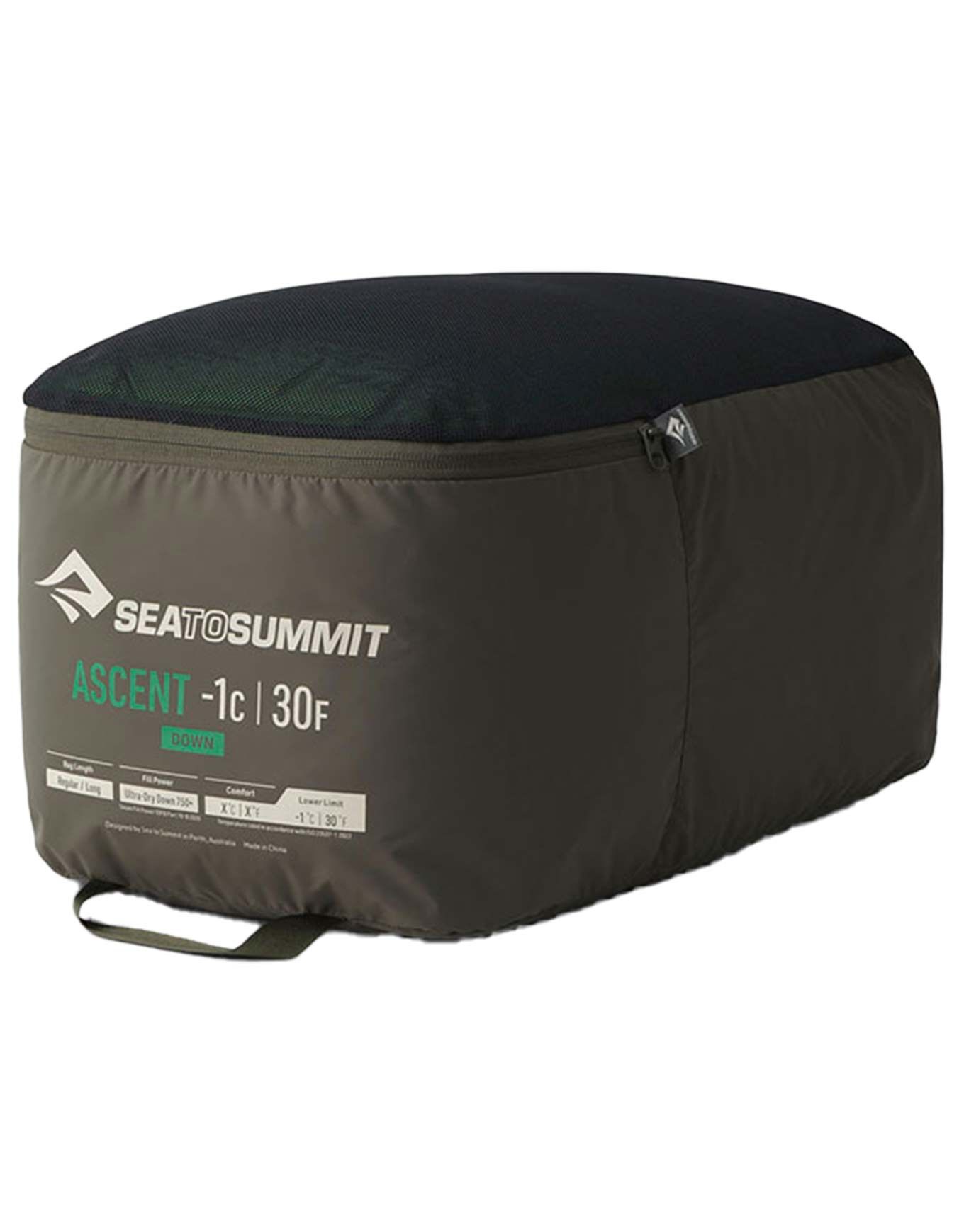Sac de couchage Sea To Summit Ascent -1 °C/30 °F Down, 3 saisons, duvet canard RDS 750 CUIN traité Ultra-Dry, boudins verticaux, fermetures éclair Free Flow double curseur, capuche et collerette réglables, confort 3 °C.