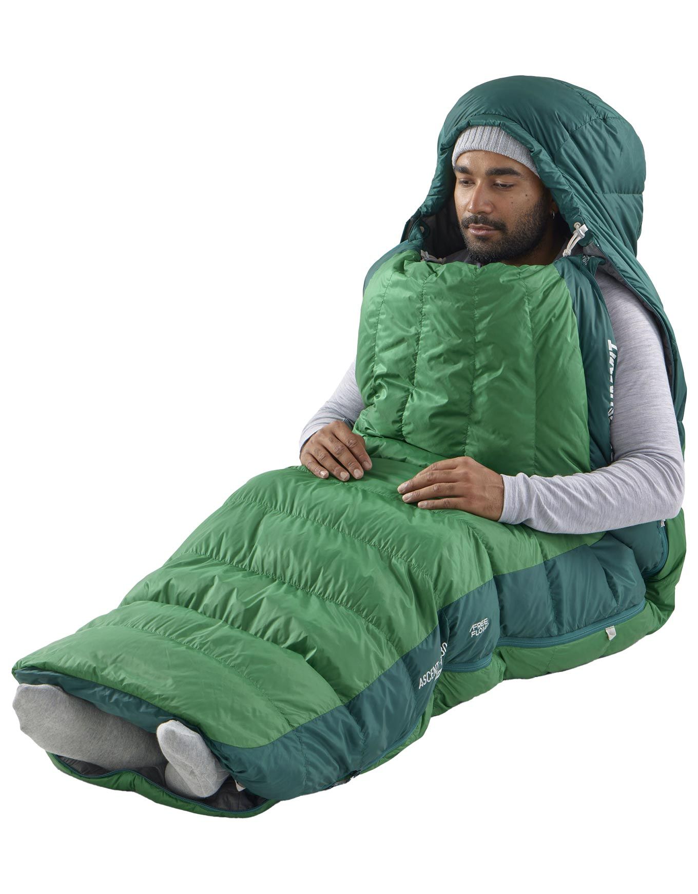 Le sac de couchage Ascent -1C/30F Down est pensé pour les sorties printemps-été-automne où chaque gramme compte. Il intègre un duvet de canard 750 CUIN, certifié RDS, traité Ultra-Dry Down™ : même en ambiance humide, l’isolant préserve son pouvoir gonflant, assurant ainsi une température de confort de 3 °C.