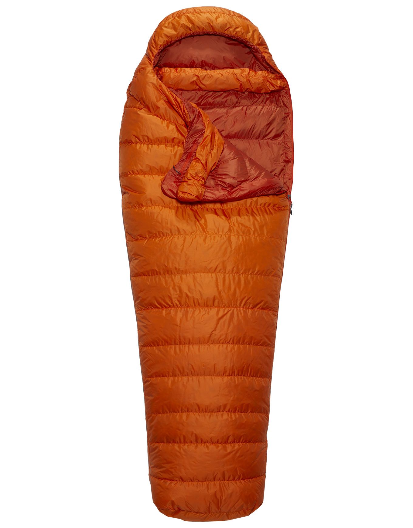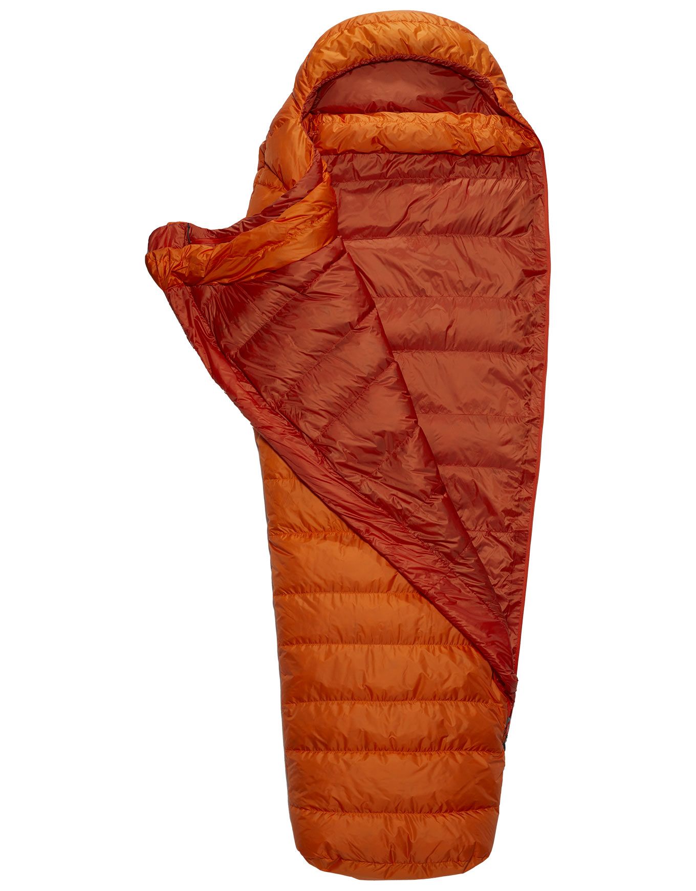 Le duvet est maintenu en place par une construction en compartiments préformés, ce qui optimise la répartition thermique. Les ponts d’air sont réduits par le col 3D resserrable, le rabat isolant sur toute la longueur de la fermeture éclair et la coupe sarcophage large. Les pieds sont gardés au chaud par la footbox inclinée, sans surépaisseur superflue.