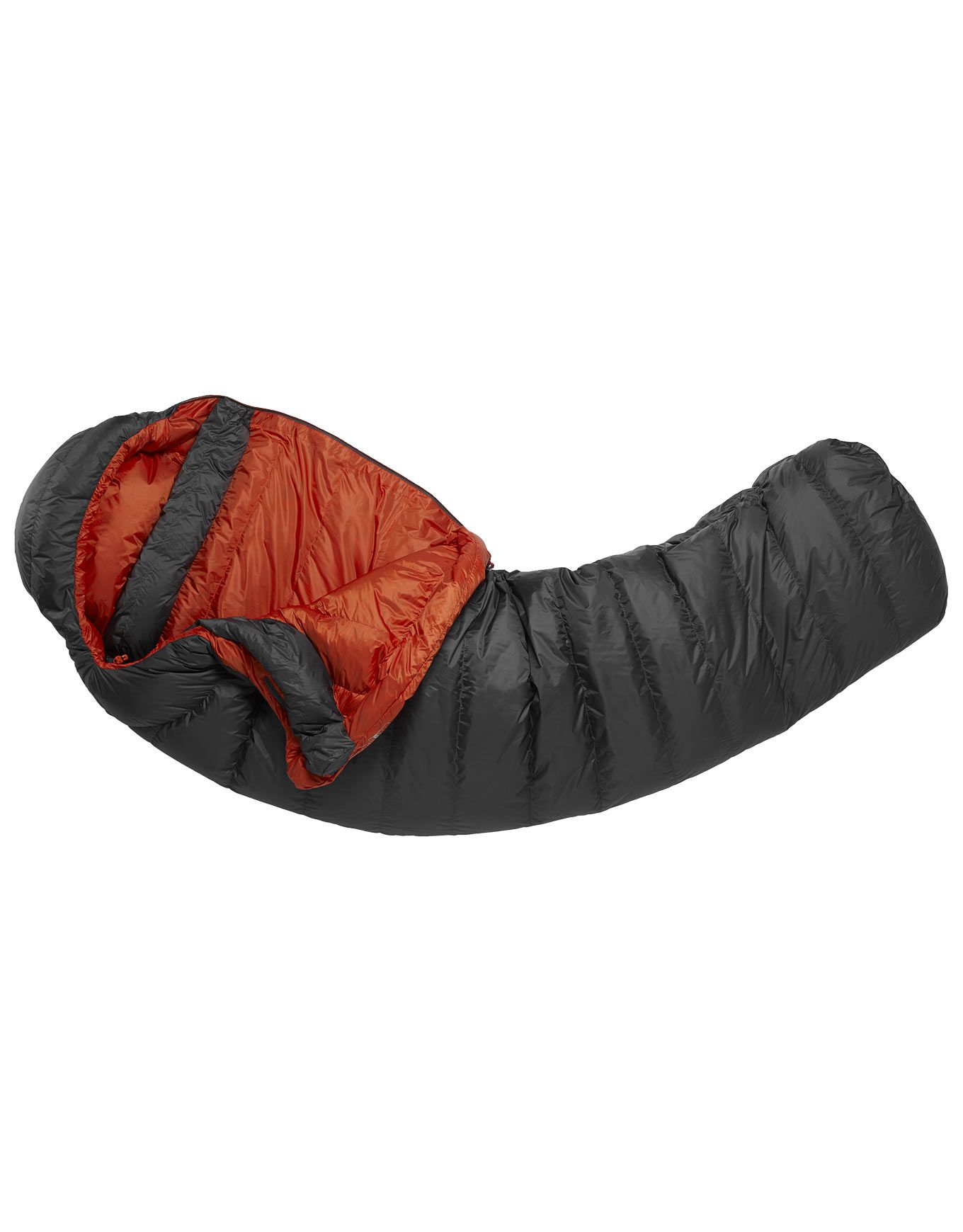 Sac de couchage Rab Ascent 500 Graphene 2 saisons, garnissage duvet 650 CUIN DWR sans PFC, tissu Pertex Quantum 30D coupe-vent, nylon recyclé 20D, confort jusqu’à 1 °C, col 3D et footbox inclinée pour isolation maximale.