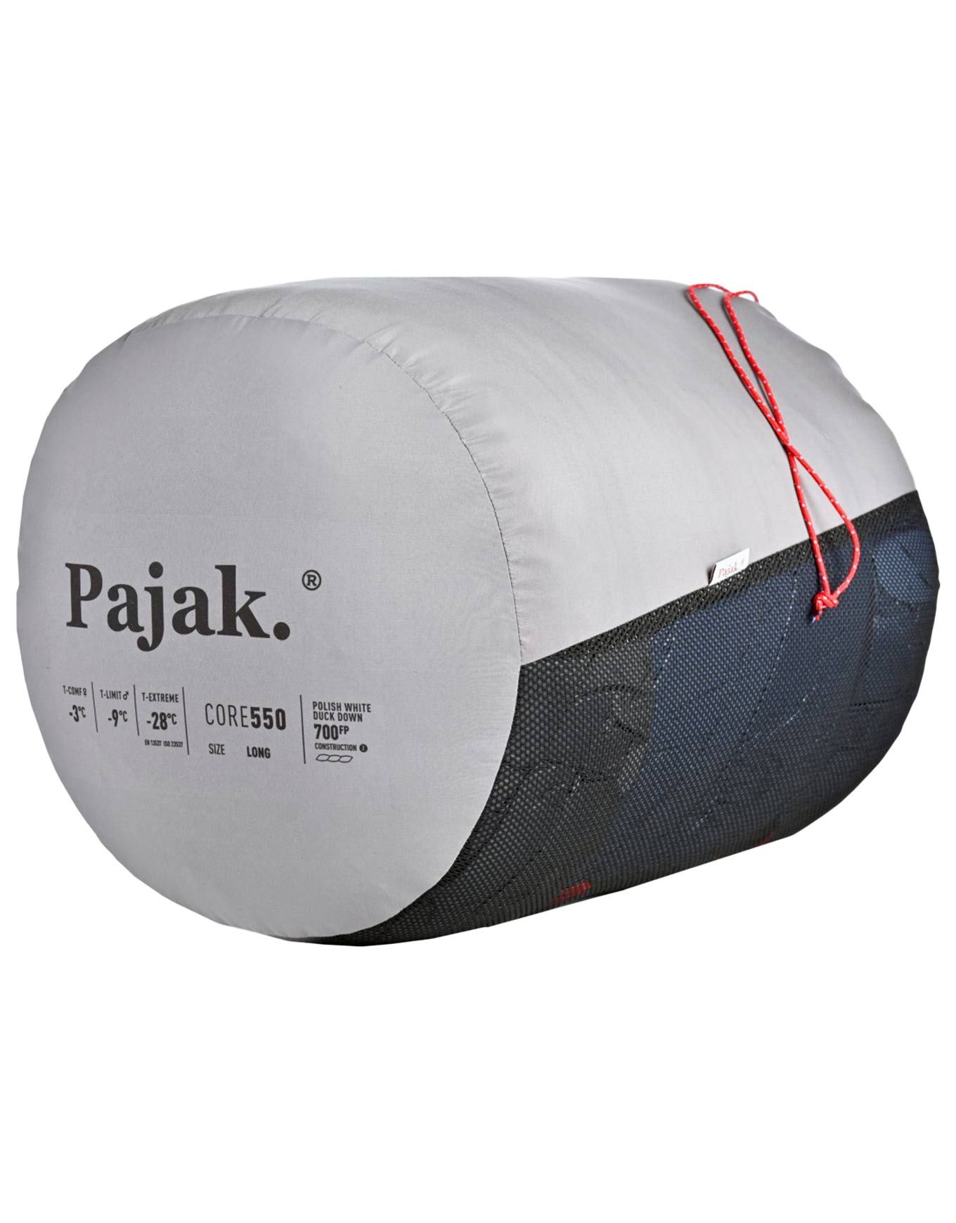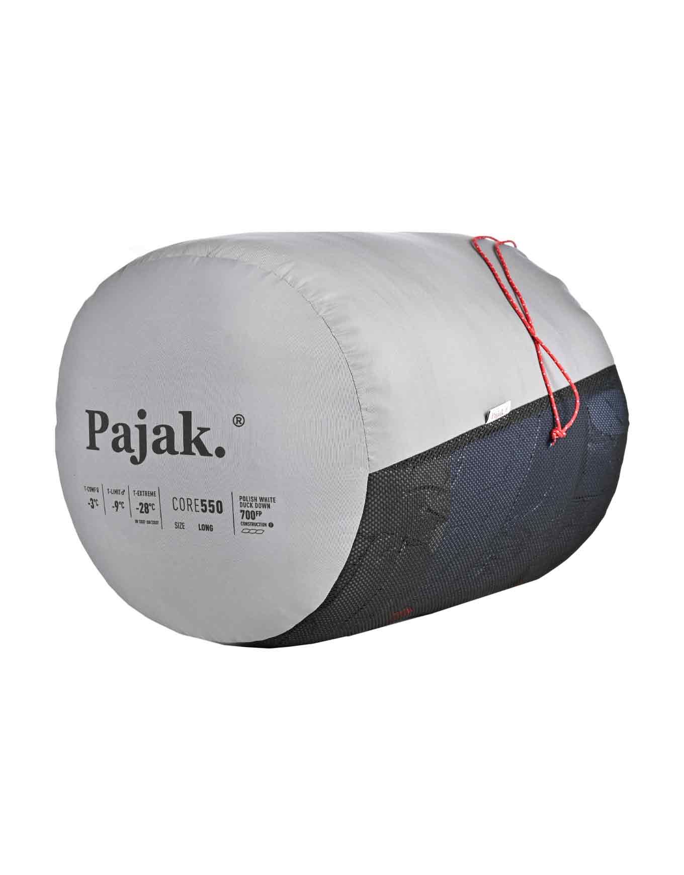 Le sac de couchage Pajak Core 550 Navy, garni de 700 cuin de duvet de canard, assure isolation et compacité du printemps à l’automne grâce au tissu Toray Airstatic et au traitement DWR.