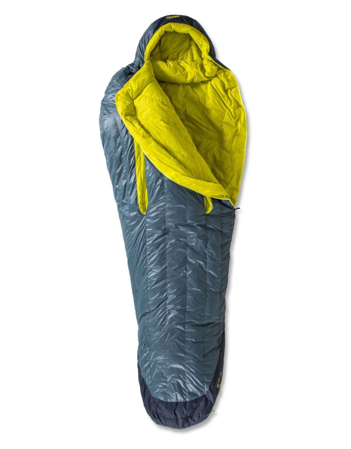Nemo Kayu 30 °C, sac de couchage ultra-light 2 saisons 800 FP hydrophobe, conserve la chaleur jusqu’à -1 °C et s’ajuste via Thermo Gills pour un confort sans prise de poids.