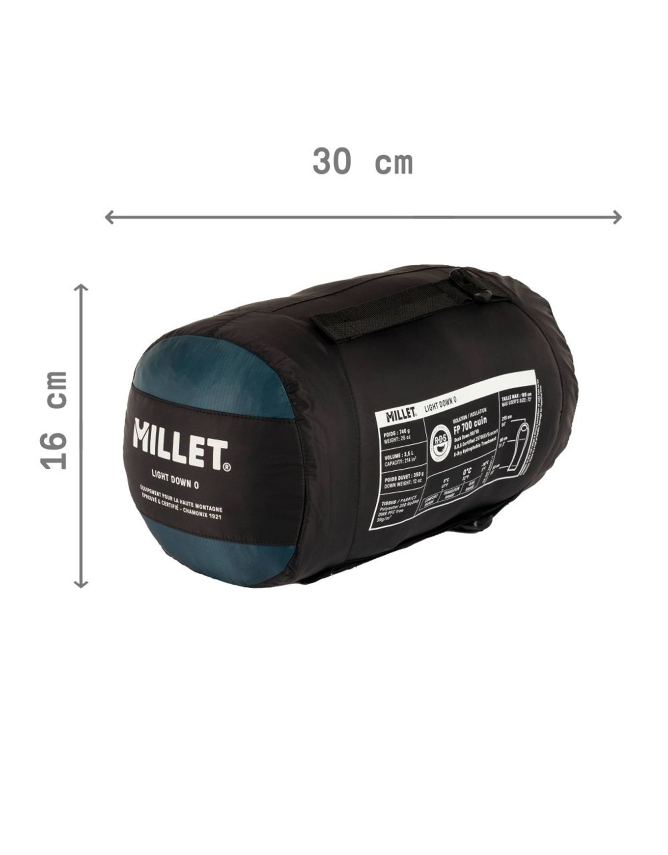 Le sac de couchage Light Down 0° Emerald de Millet, en plume de canard K Dry Down hydrofuge, offre une isolation fiable jusqu’à 5 °C et un encombrement minimal pour le trekking.