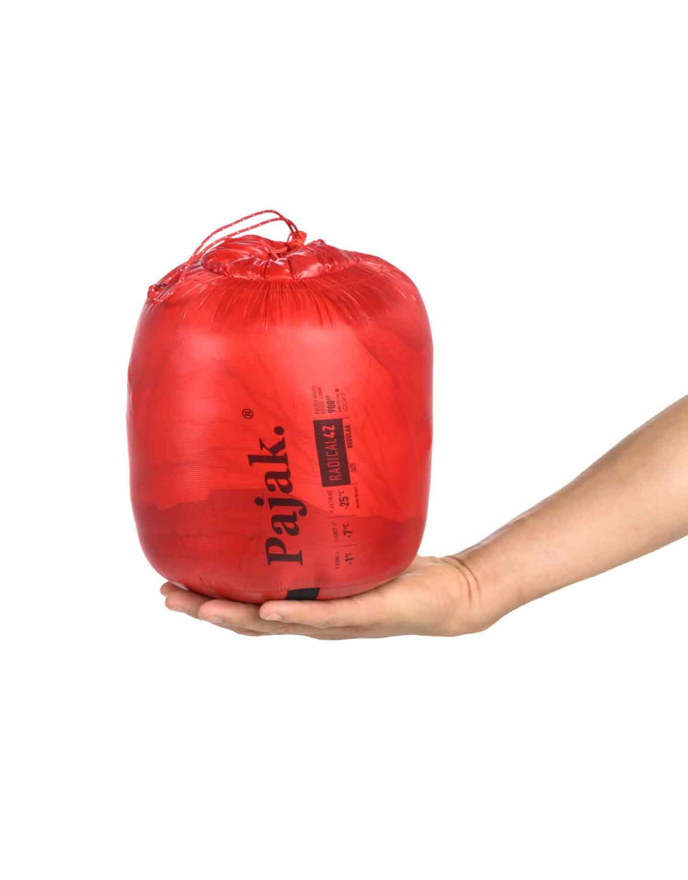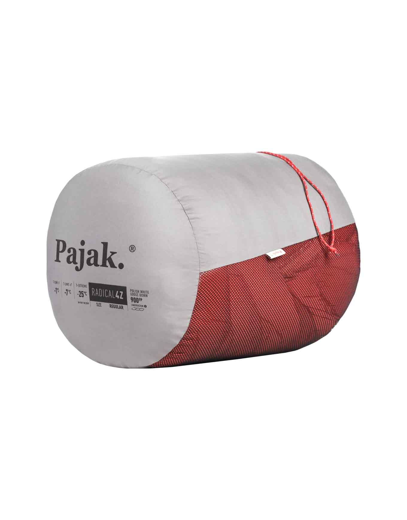 Sac de couchage Pajak Radical 4Z Red, 720 g, duvet RDS, capuche ajustable, extrémités imperméables, poche intérieure, fermeture YKK® étanche.