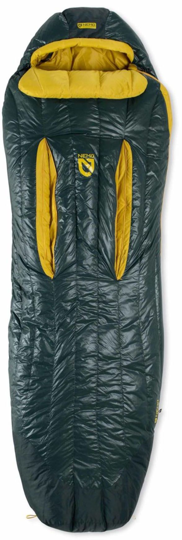 - La régulation de la température intérieure est assurée par deux ouvertures Thermo Gills™, exclusivité Nemo, qui évitent d’avoir à dézipper entièrement le sac