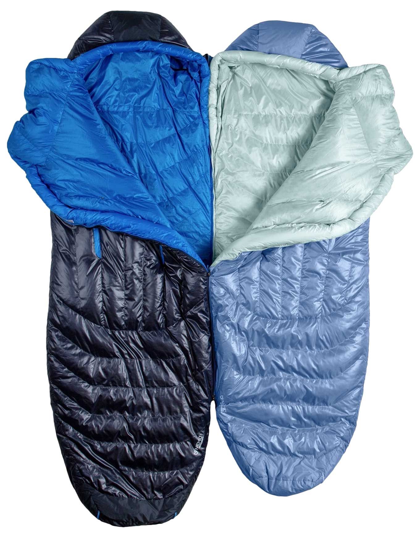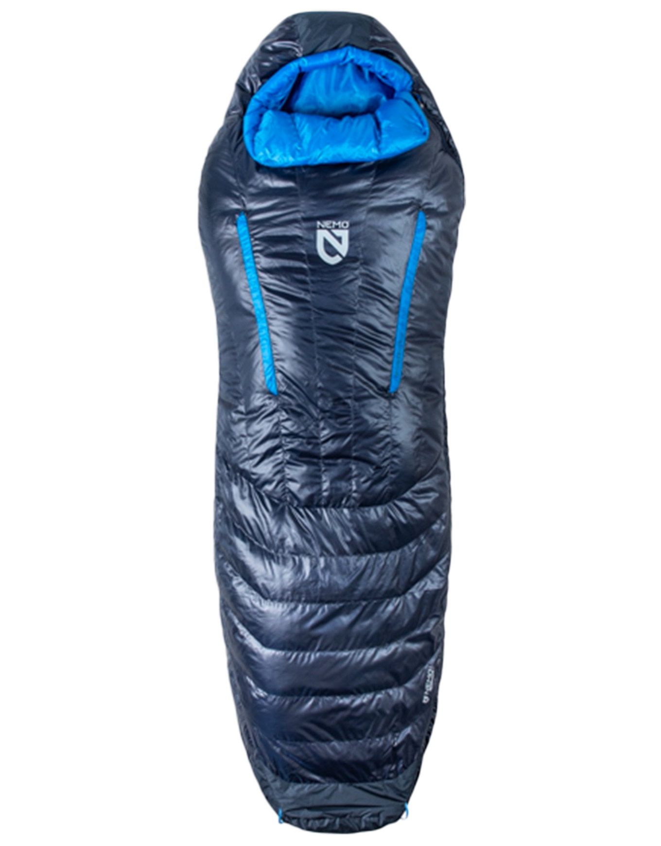 Sac de couchage Nemo Riff 30 Stormy Night pour homme, confort 4 °C, duvet RDS 800 CUIN hydrophobe, forme Ultralight Spoon™ et rabat Blanket Fold™ pour chaleur et liberté de mouvement du printemps à l’automne.