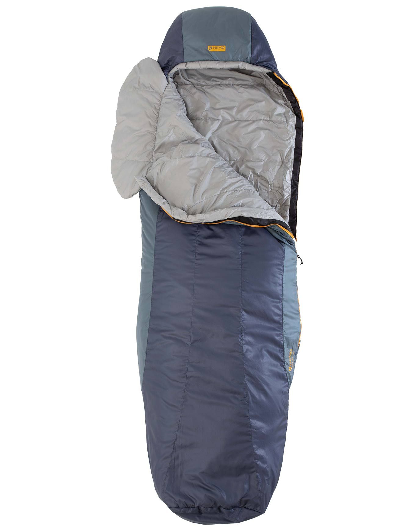 Sac de couchage Nemo Tempo 20 Odyssey Gray/Titanium pour homme, confort -1°C. Isolation Stratofiber™ résistante à l’humidité, rabat Blanket Fold™ et forme Spoon™ pour dormir sur le côté.