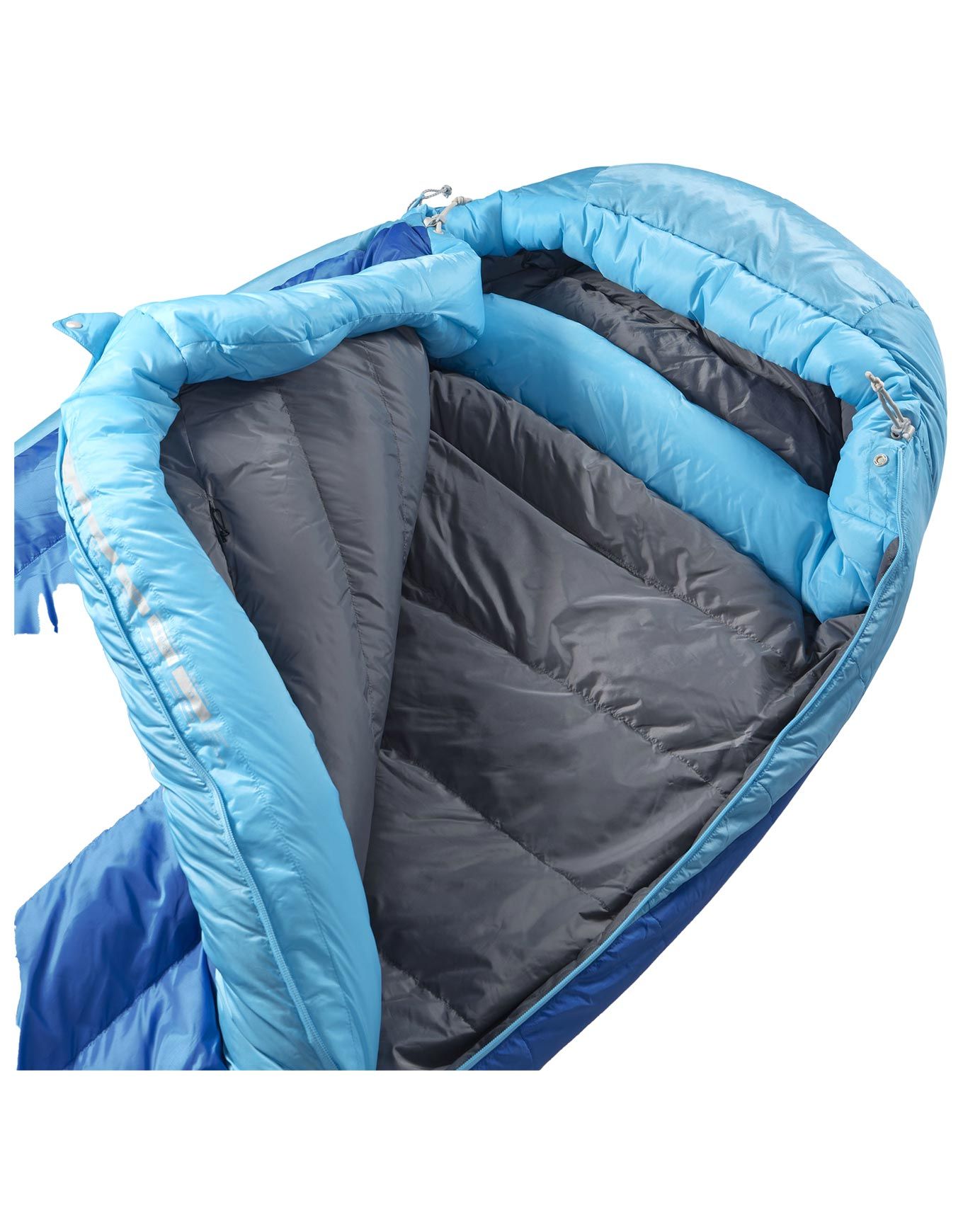 L’enveloppe externe est en polyester recyclé : réduction du poids total associée à une meilleure longévité, pour un équipement fidèle sur de multiples saisons et itinéraires. La formehybride semi-rectangulaire procure une amplitude suffisante aux jambes sans compromettre la rétention de chaleur.