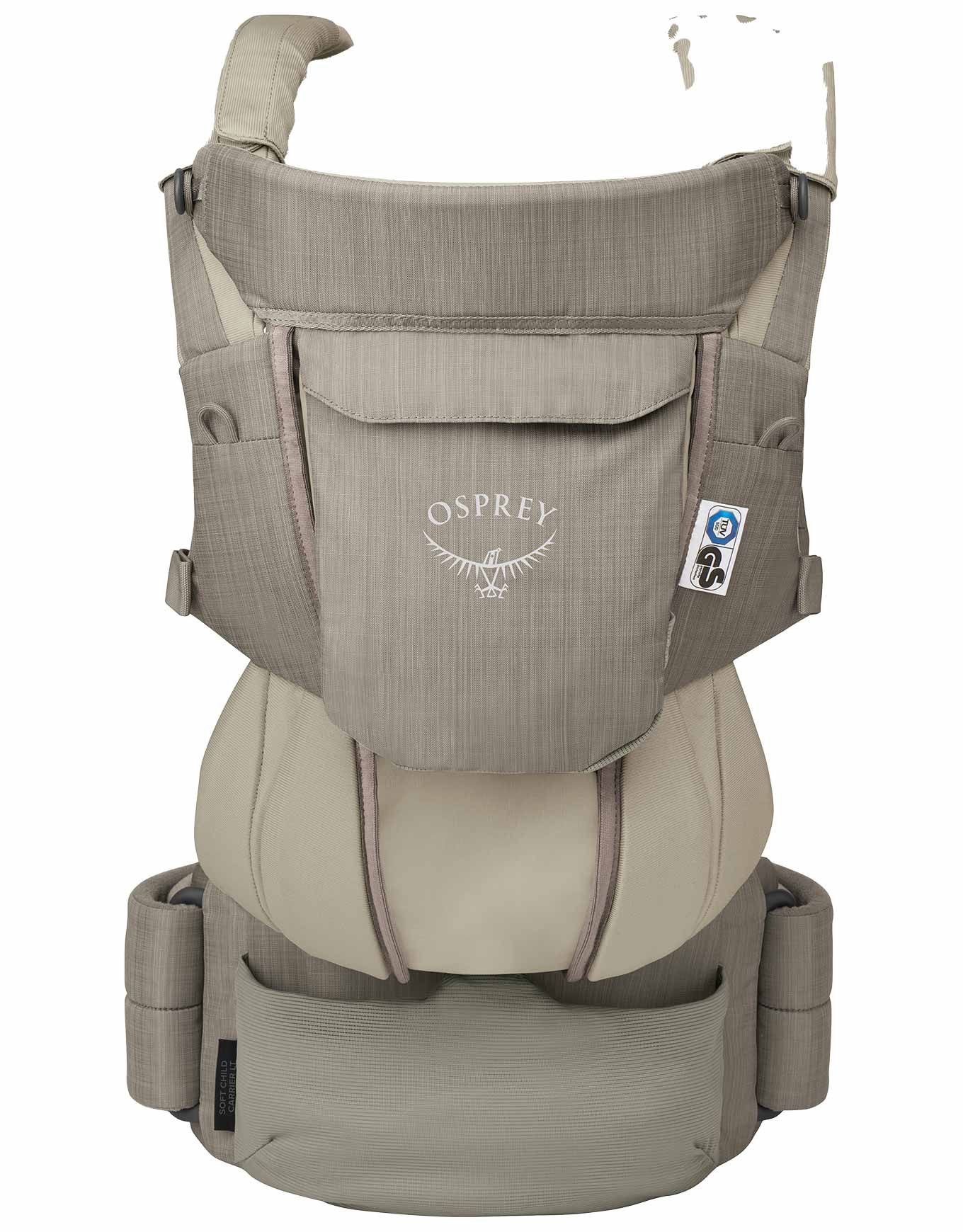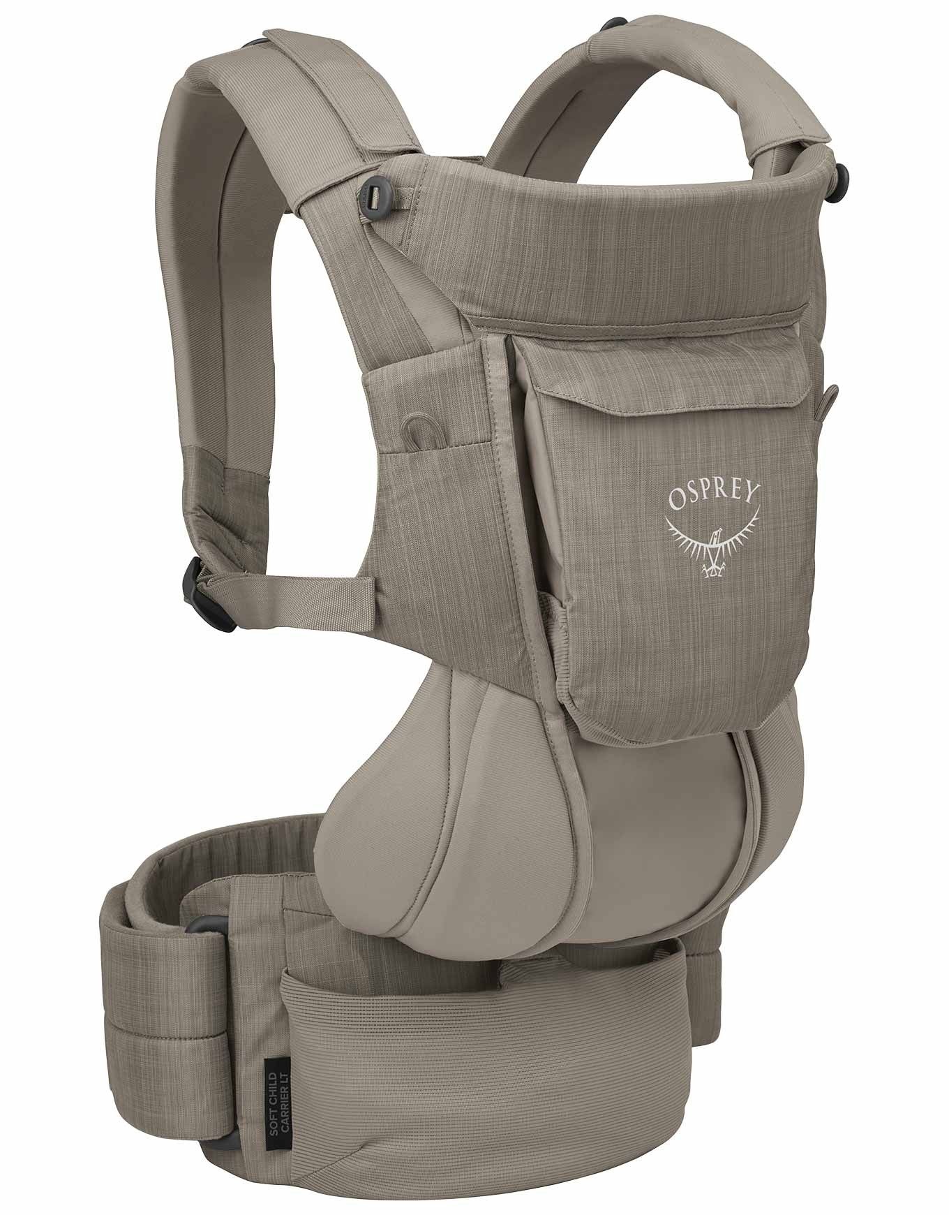 Le porte-bébé Poco Soft Carrier LT Tan Concrete d’Osprey offre trois positions de portage évolutives, un siège mesh respirant pour l’enfant et une ceinture rembourrée 3D réglable pour le confort du parent.