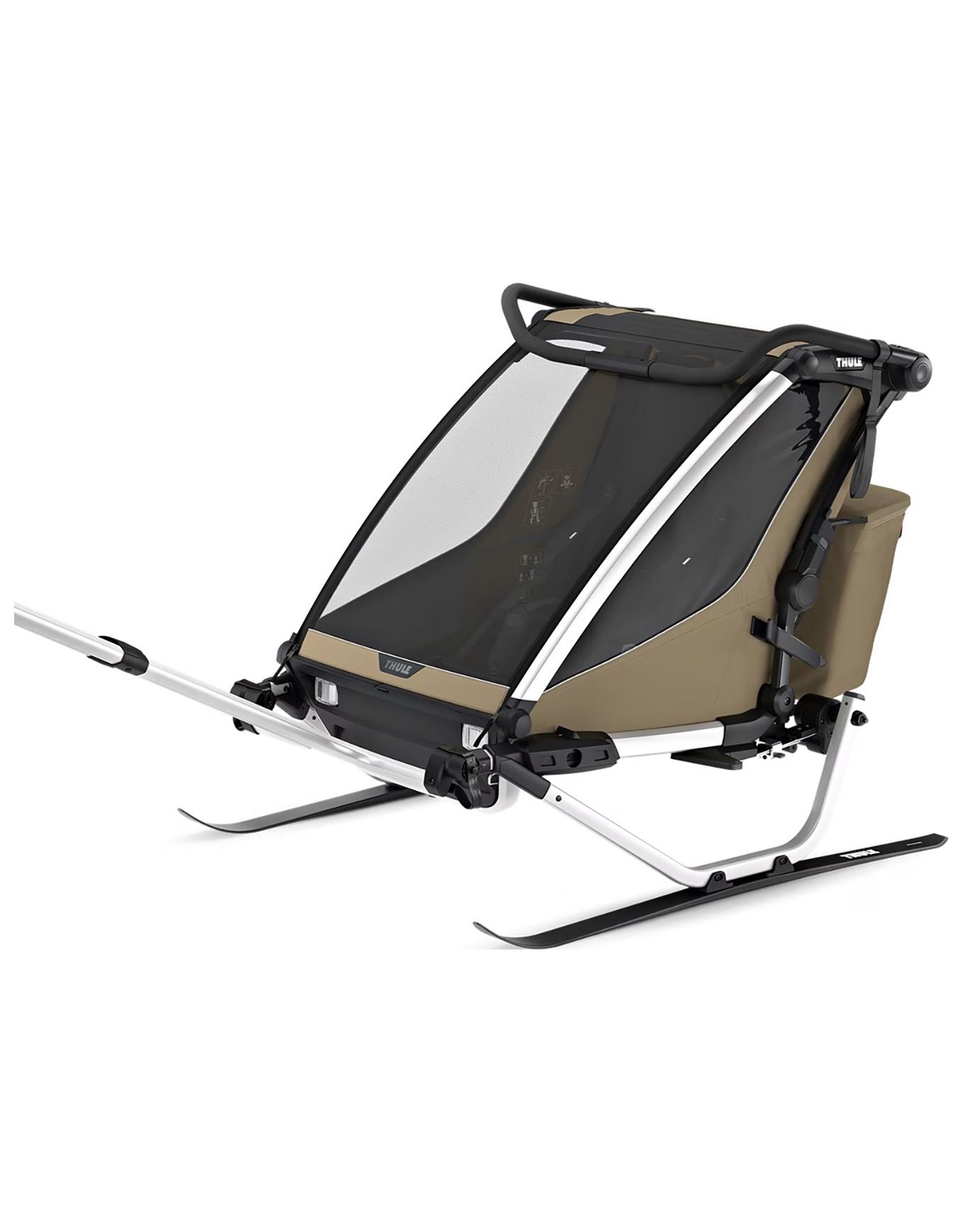 Le système VersaWing innovant équipant ce chariot autorise un passage rapide d’une activité à une autre, tandis que le Click n’Store facilite le rangement des divers kits. Le siège intérieur est doté d’un matelassage, et la ventilation de l’habitacle se règle aisément pour maîtriser la circulation de l’air. Les enfants sont abrités de la pluie et du vent par un rabat transparent qui permet simultanément la surveillance. Confort et sécurité sont garantis durant toute l’excursion grâce au guidon réglable et à l’éclairage arrière.