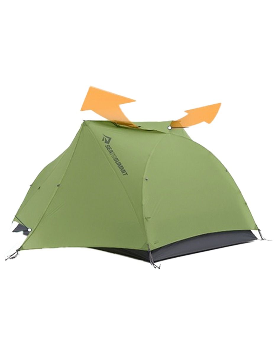 Tente de trekking 2 places Sea To Summit Alto TR2 Plus, ultralégère, architecture Tension Ridge pour espace et hauteur accru, double abside, 5 modes de montage, aérations réglables intérieurement.
