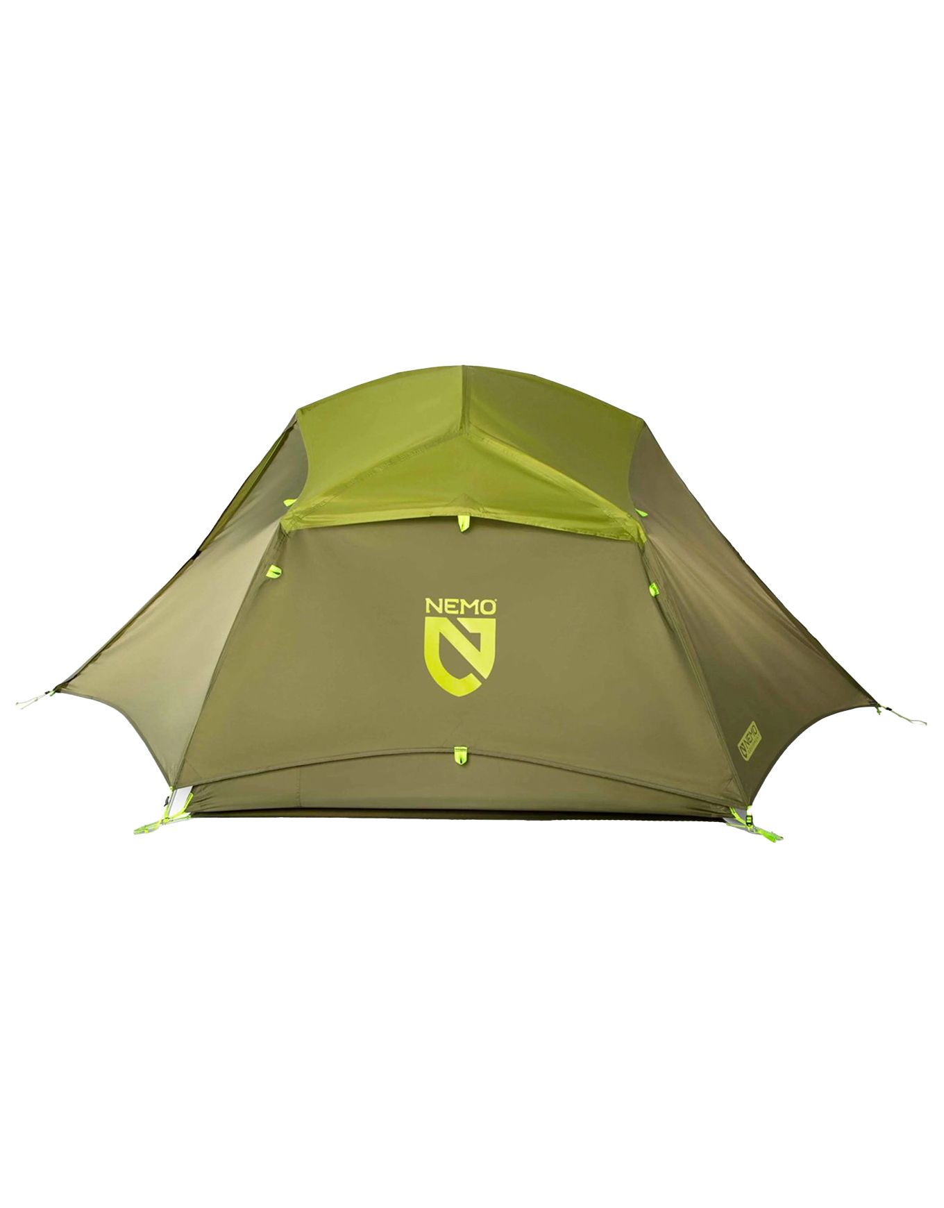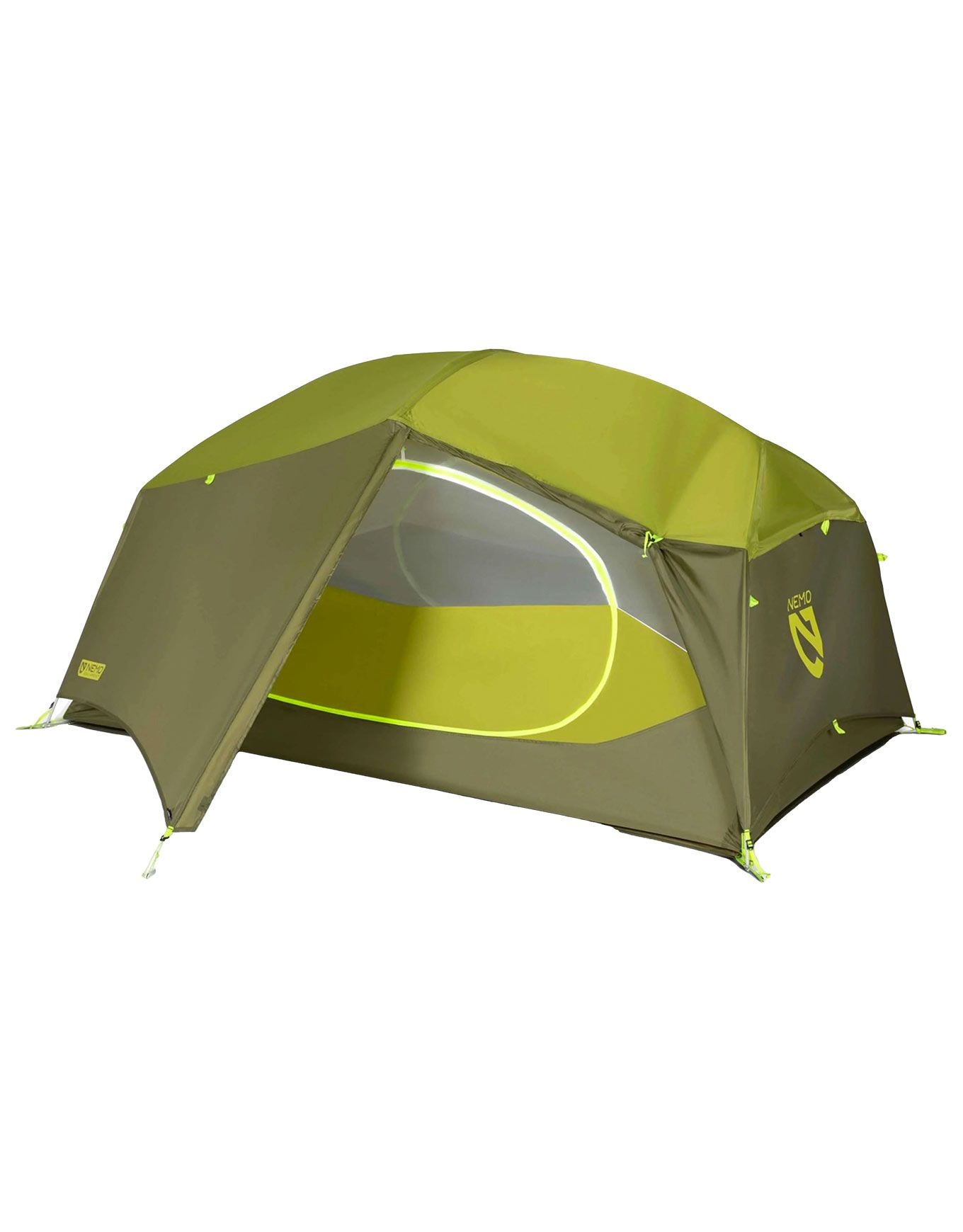 Tente Nemo Aurora 2P Nova Green avec footprint pour 2 randonneurs, dôme autoportant en arceaux aluminium DAC, imperméabilité 2000 mm, 2 portes D et absides, 3 saisons.