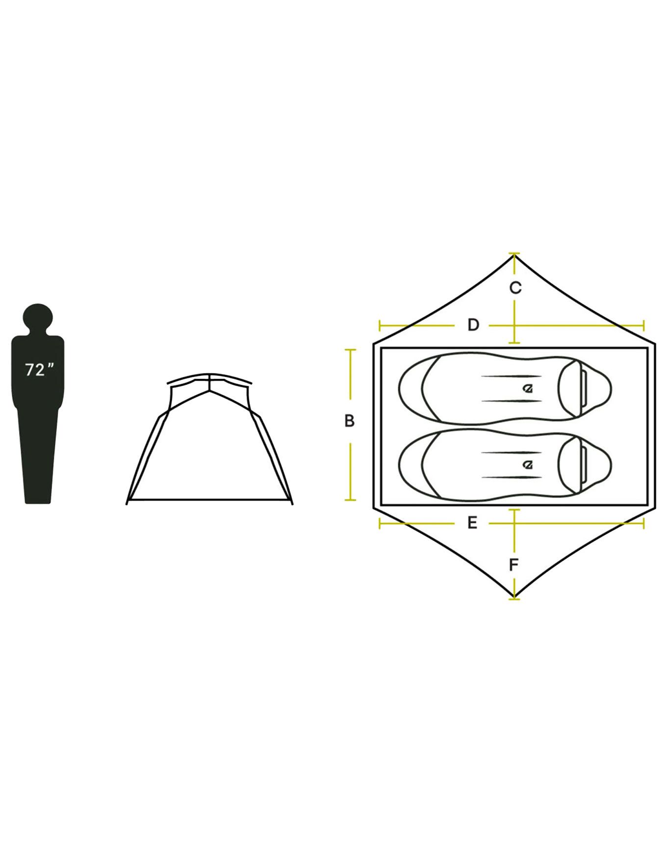 Toile extérieure 100 % polyester avec enduit polyuréthane, colonne d’eau 2000 mm, protège des averses modérées. Chambre intérieure en polyester 68D et moustiquaire occultante No-See-Um Mesh : ventilation optimale et barrière anti-insectes. Tapis de sol en polyester 75D enduit PU, 2000 mm, isole de l’humidité du sol.