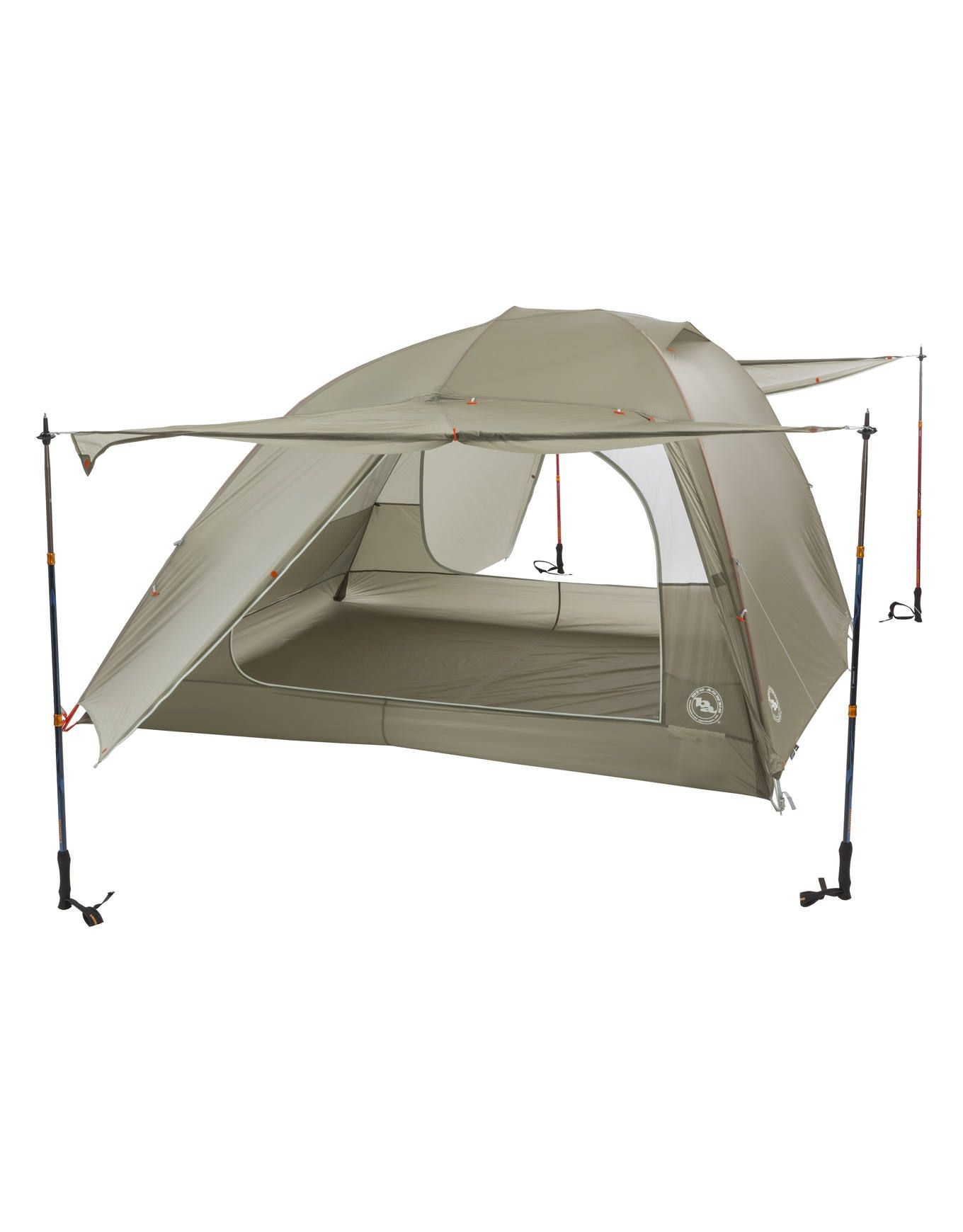 Tente 5 places 3 saisons Big Agnes Copper Spur HV UL5, autoportante et ultra-légère, dotée de deux portes transformables en auvent, ventilation haute/basse anti-condensation et poches de rangement intérieures.