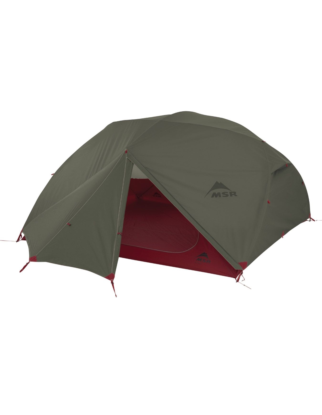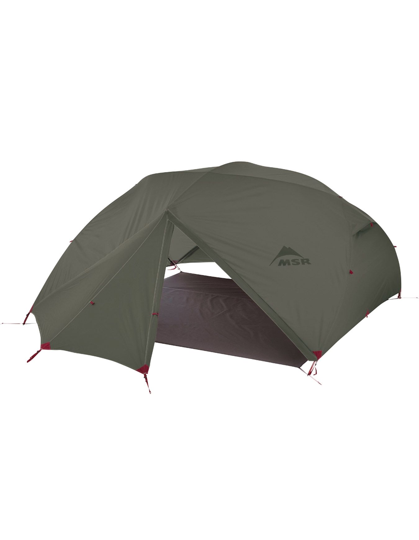 Tente autoportante MSR Elixir 4, 3 saisons, accueillant 4 adultes avec vestibule agrandi de 35 %, toile de sol incluse, ventilation moustiquaire et fermetures luminescentes pour un montage rapide.