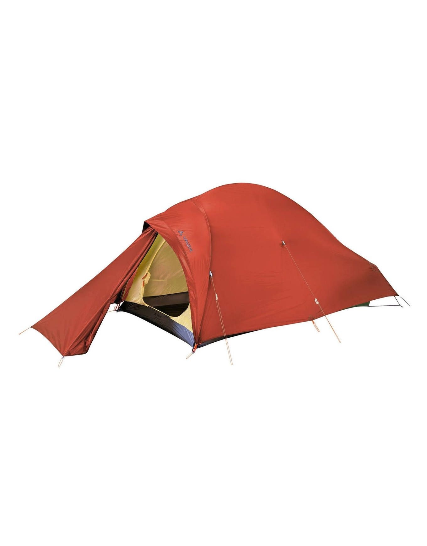 Tente Vaude Hogan UL 2P Orange, dôme 3 saisons 2 places, ultra-légide grâce à sa construction minimaliste, imperméable siliconée, ventilation réglable et moustiquaire intégrée.