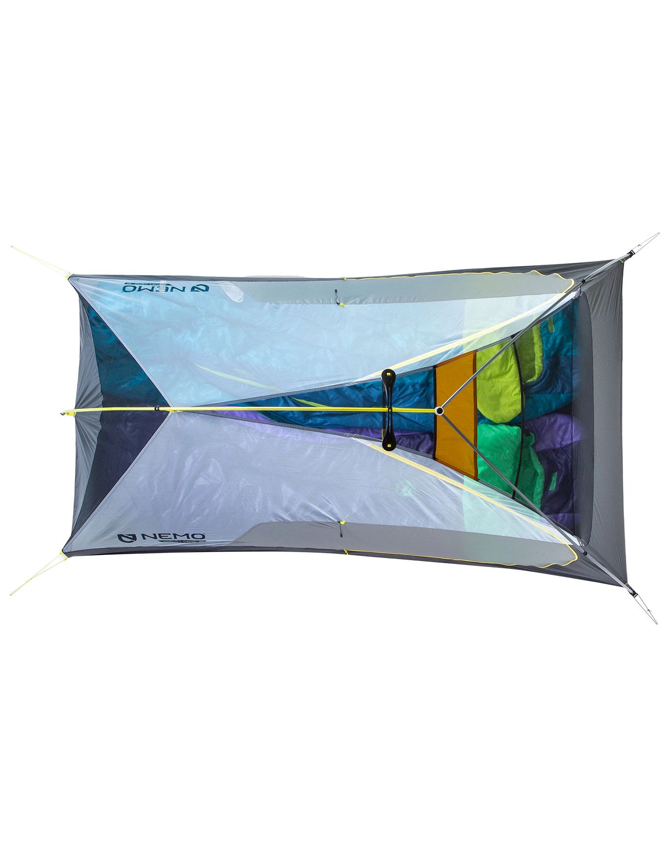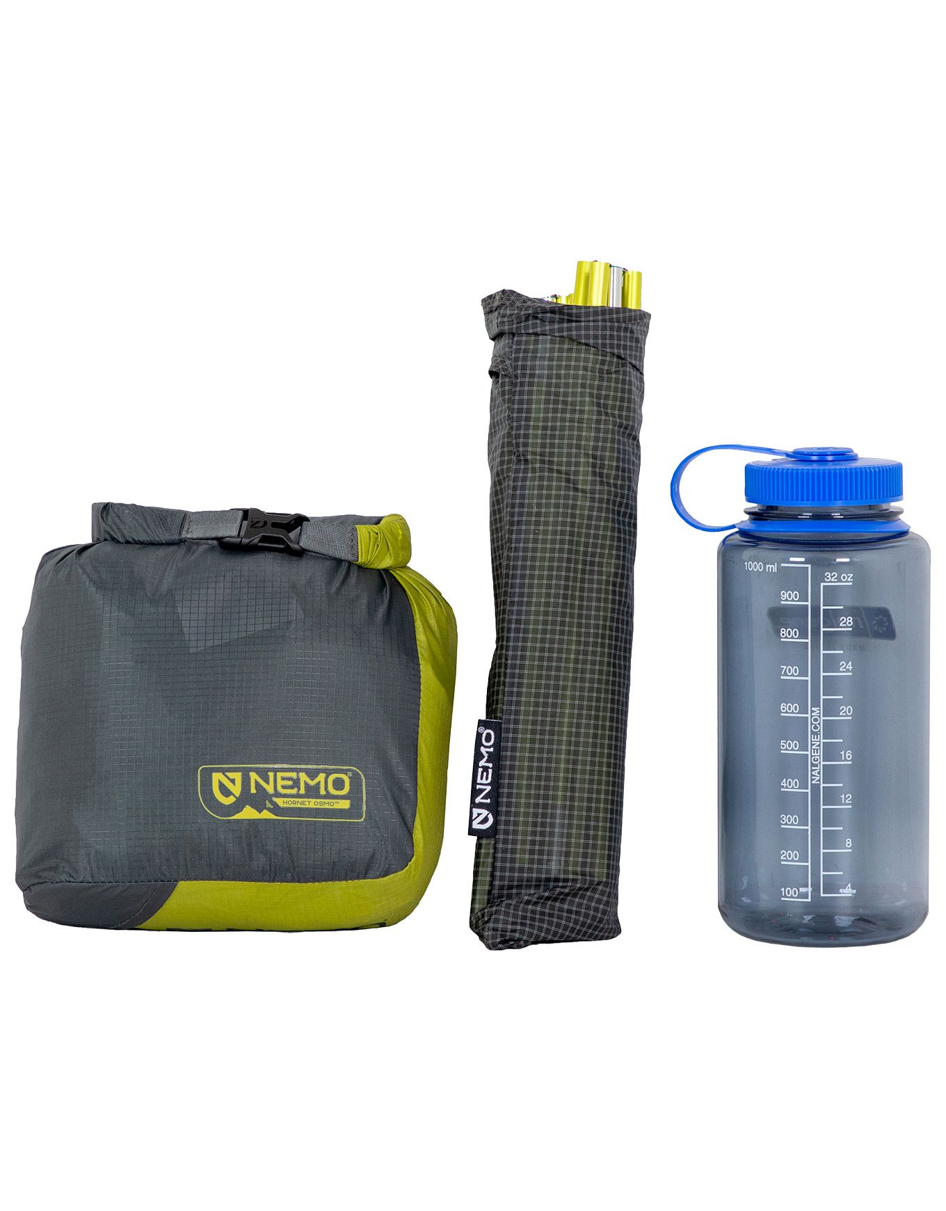 Tente Nemo Hornet OSMO 2P ultralégère pour 2 trekkeurs, tissu ripstop nylon OSMO 3× plus résistant à l’humidité, arceaux Featherlite, séchage rapide, sac Divvy Cube compact.