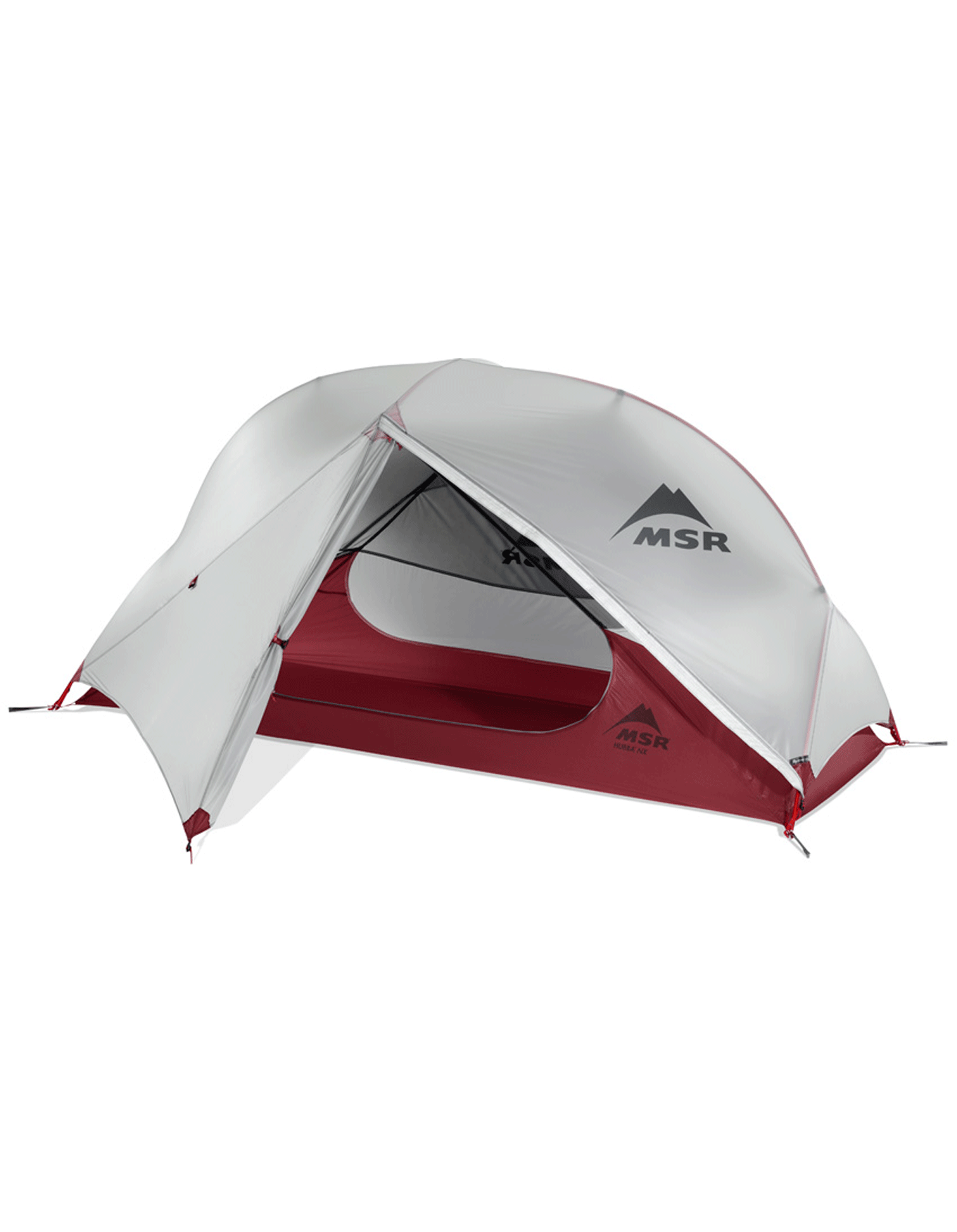 Tente de trekking 1 place MSR Hubba NX, ultra-légère et compacte pour camping 3 saisons, offrant un espace vivable maximalisé par sa géométrie symétrique et son tapis rectangulaire. Porte StayDry, double-toit adaptable et grand vestibule pour confort et ventilation.