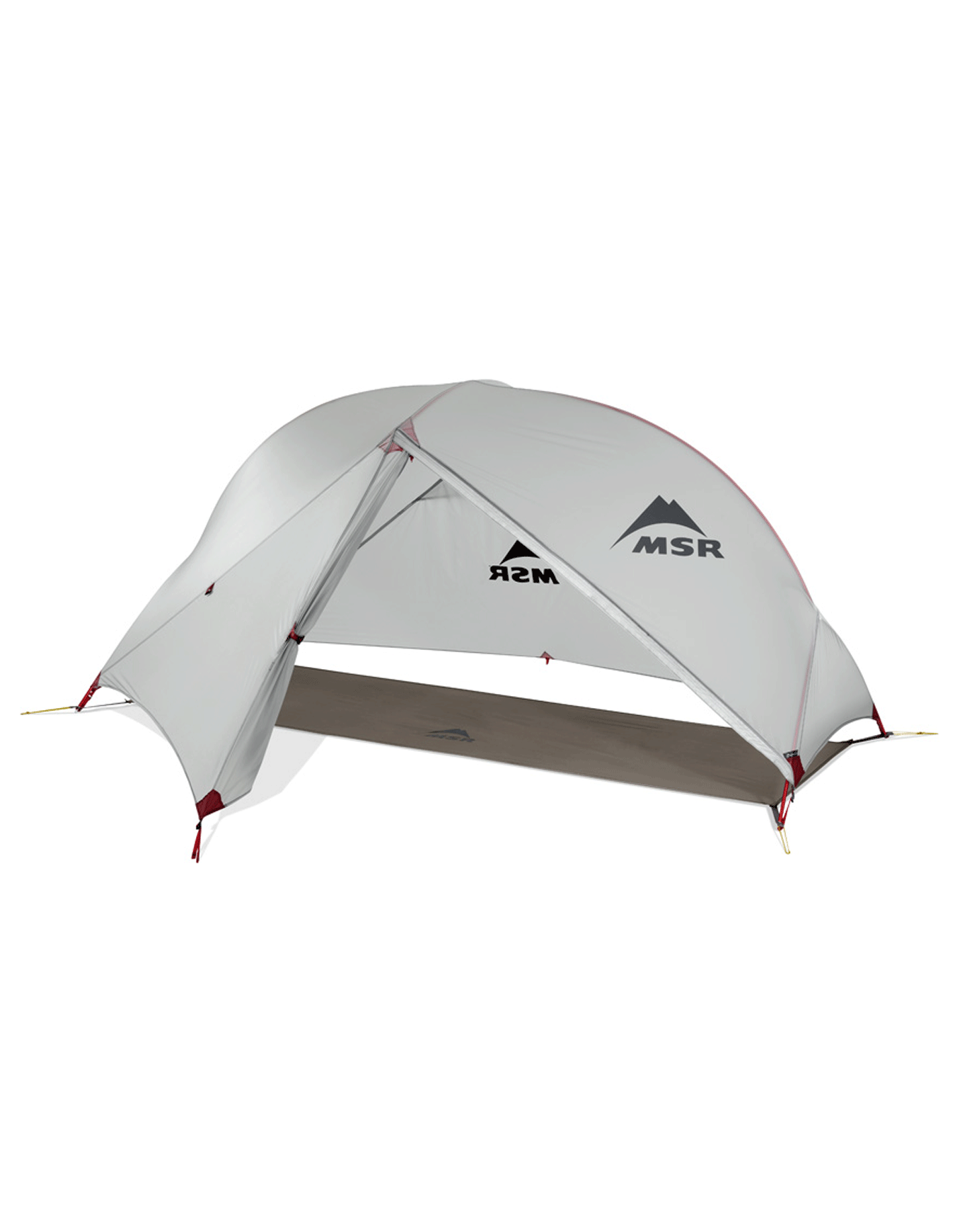 Tente de trekking 1 place MSR Hubba NX, ultra-légère et compacte pour camping 3 saisons, offrant un espace vivable maximalisé par sa géométrie symétrique et son tapis rectangulaire. Porte StayDry, double-toit adaptable et grand vestibule pour confort et ventilation.