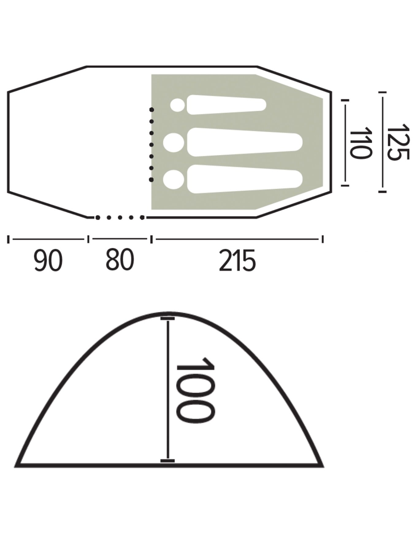 Son vaste abside permet à deux campeurs de passer la nuit paisiblement, leurs équipements étant parfaitement protégés des intempéries. La membrane en polyester ripstop 70D garantit une protection optimale contre les précipitations et les rafales. Quant au plancher en polyester 70D traité PU, son indice d’étanchéité de 5000 mm assure une isolation efficace et une barrière contre l’humidité terrain.