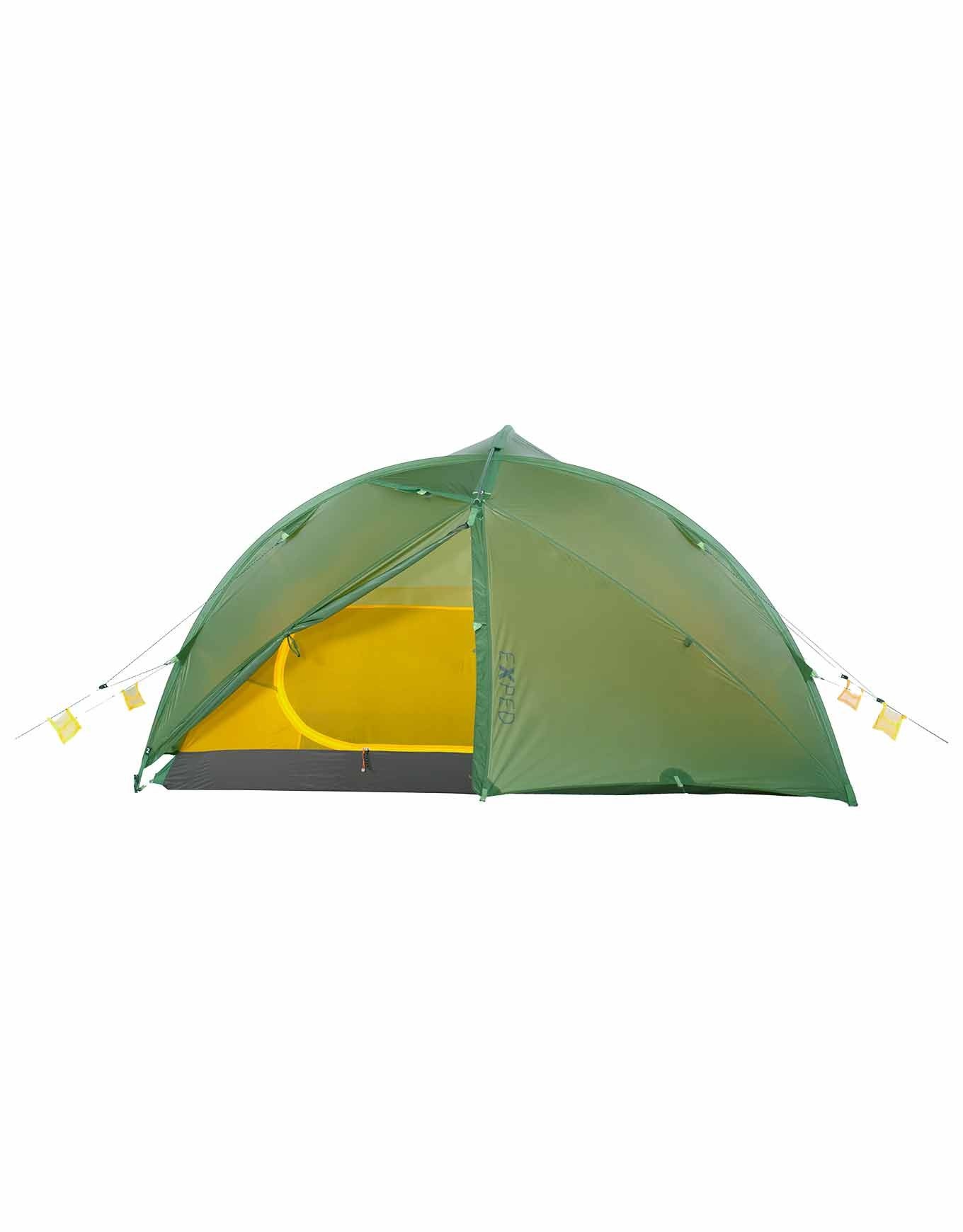 Tente de trekking 4 saisons Exped Venus III UL Moss ultra-légère en nylon ripstop 15D silicone, 2 entrées et 2 absides spacieuses pour 2-3 personnes, ventilation optimale et montage intuitif.