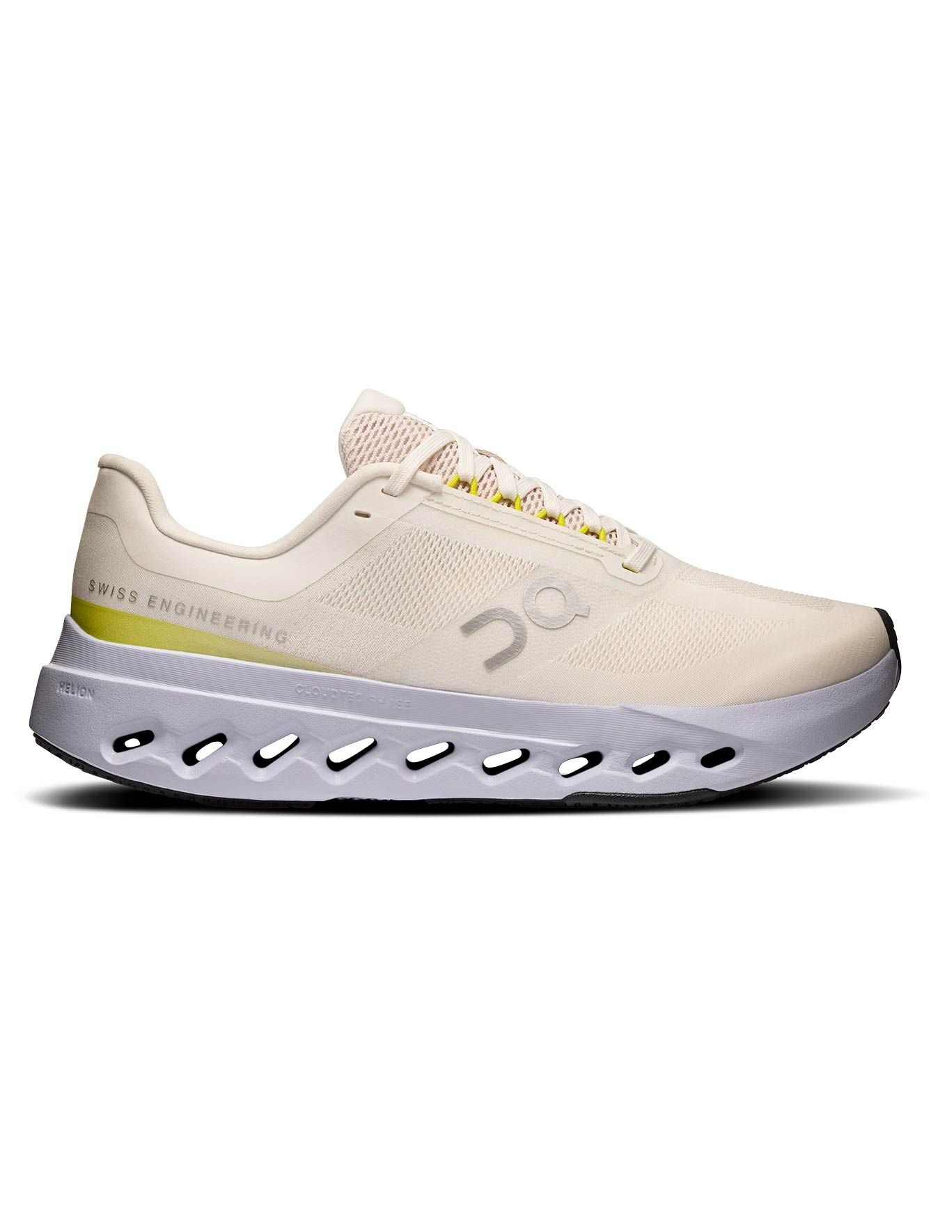 La Cloudsurfer Next Ivory/Nimbus de On Running est une chaussure de running femme alliant amorti CloudTec Phase®, mousse Helion et mesh respirant en polyester recyclé pour des foulées fluides et dynamiques sur route.