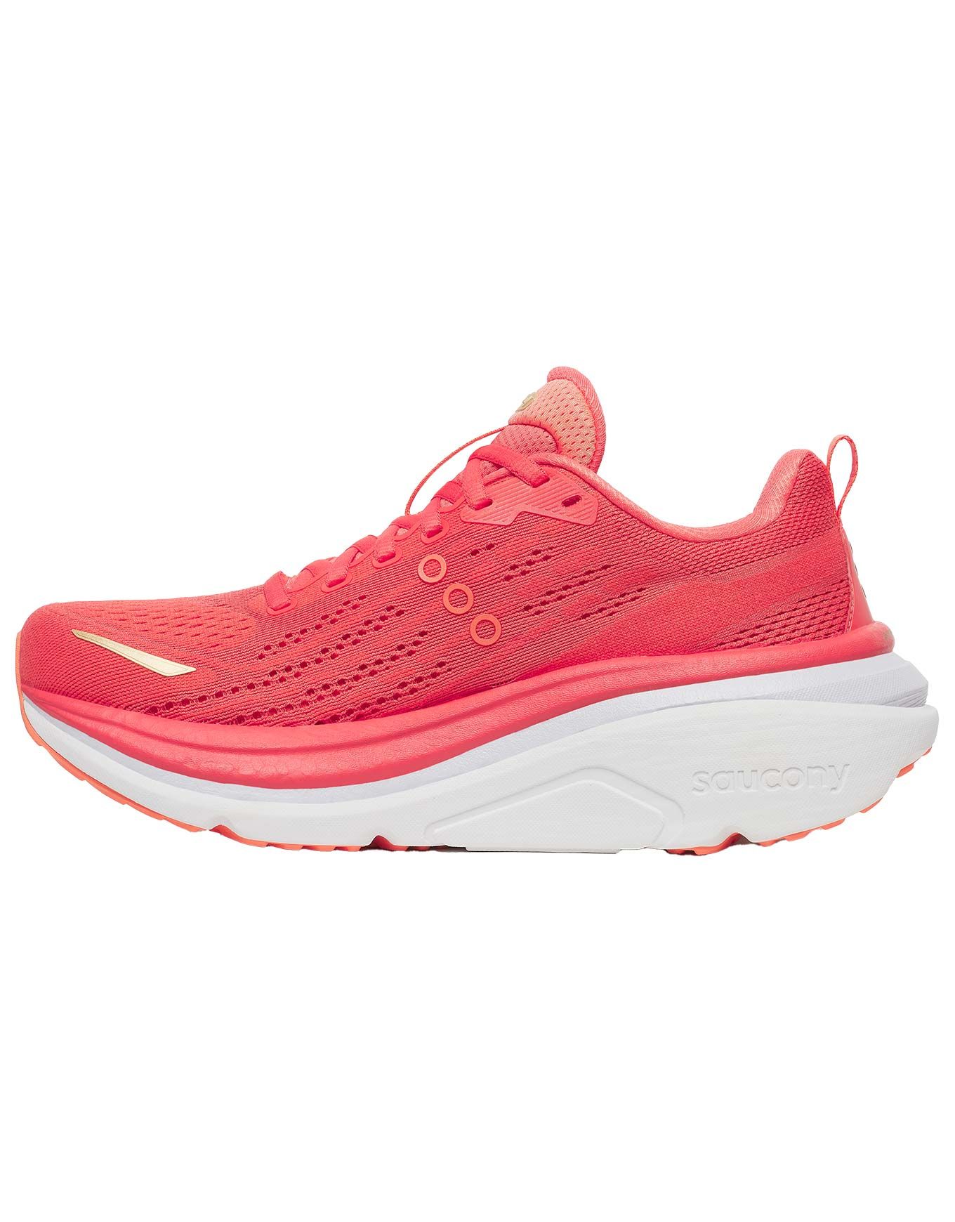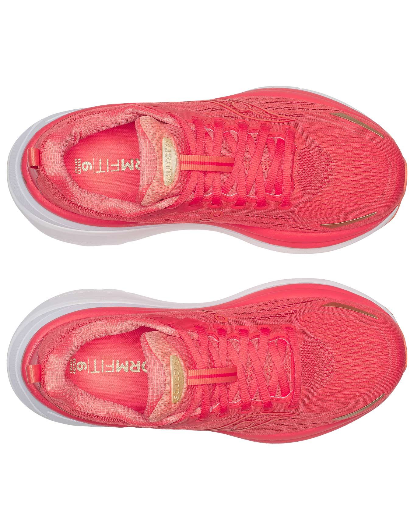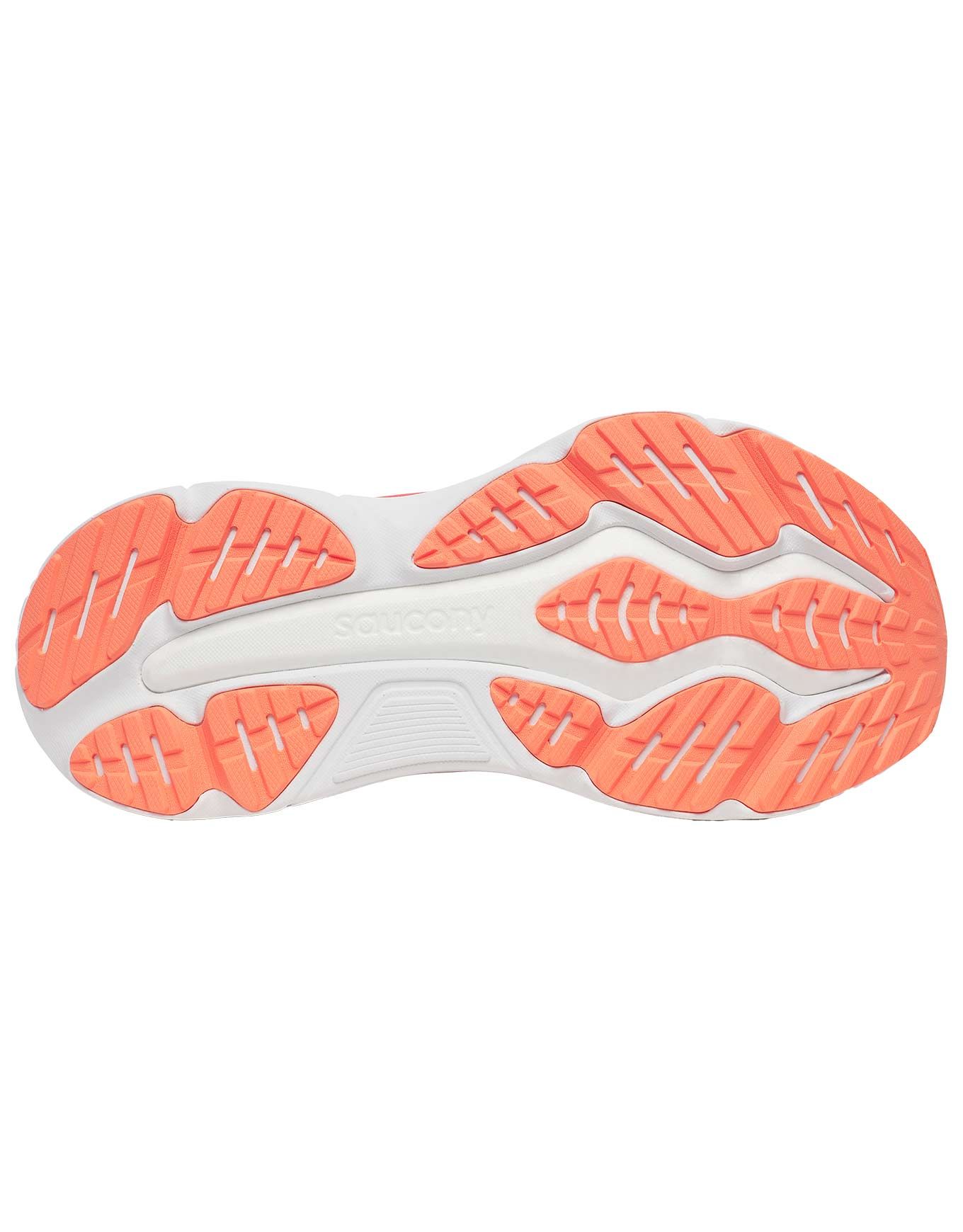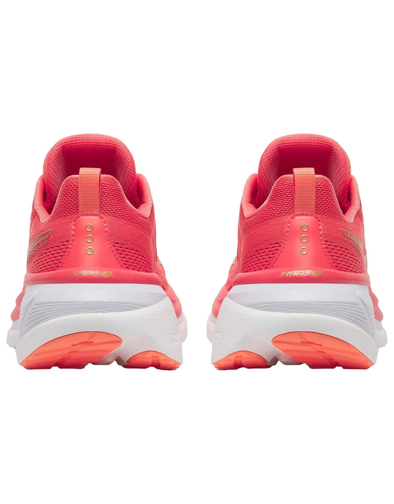 Saucony Hurricane 25 Coral/Thistle, chaussures de running femme, combinent amorti PWRRUN PB Pebax® réactif et soutien double densité CenterPath pour confort et maintien sur toutes distances.