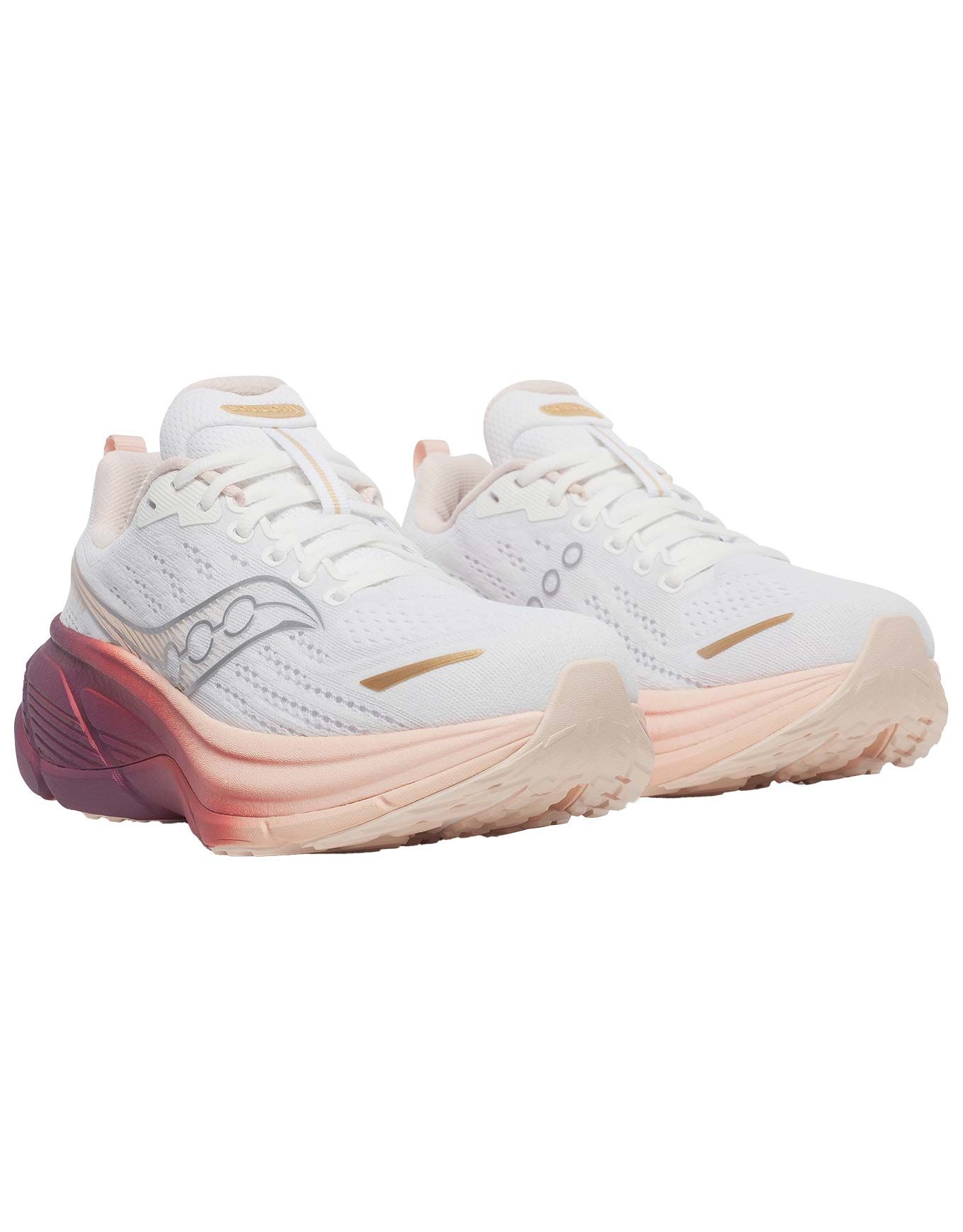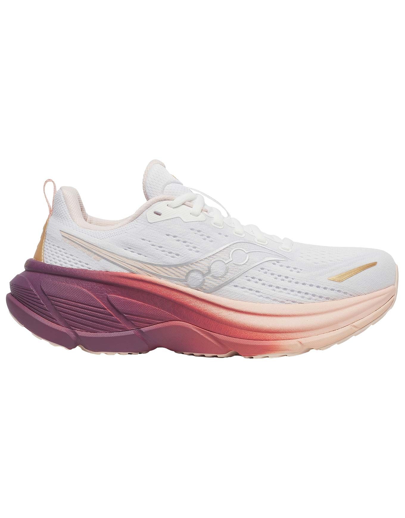 La Saucony Hurricane 25 White/Cameo est une chaussure de running femme associant amorti maximal PWRRUN PB en Pebax®, soutien stable PWRRUN et maintien renforcé par la technologie CenterPath pour des sorties confortables sur toutes les distances.