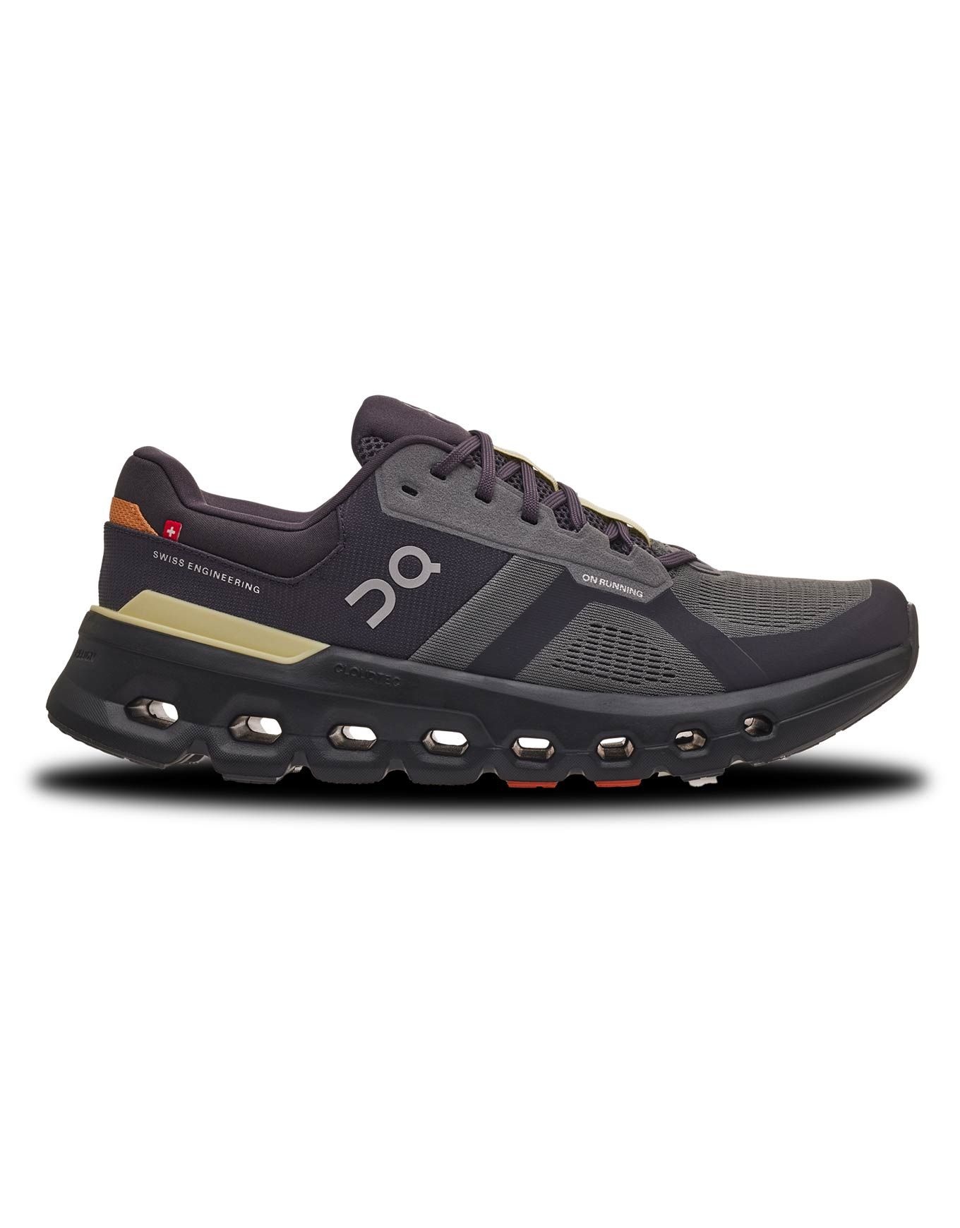Chaussure de running homme On Running Cloudrunner 2 Rock/Tangerine, conçue pour les entraînements quotidiens et les courses longues sur route avec 30 % de matériaux recyclés.
