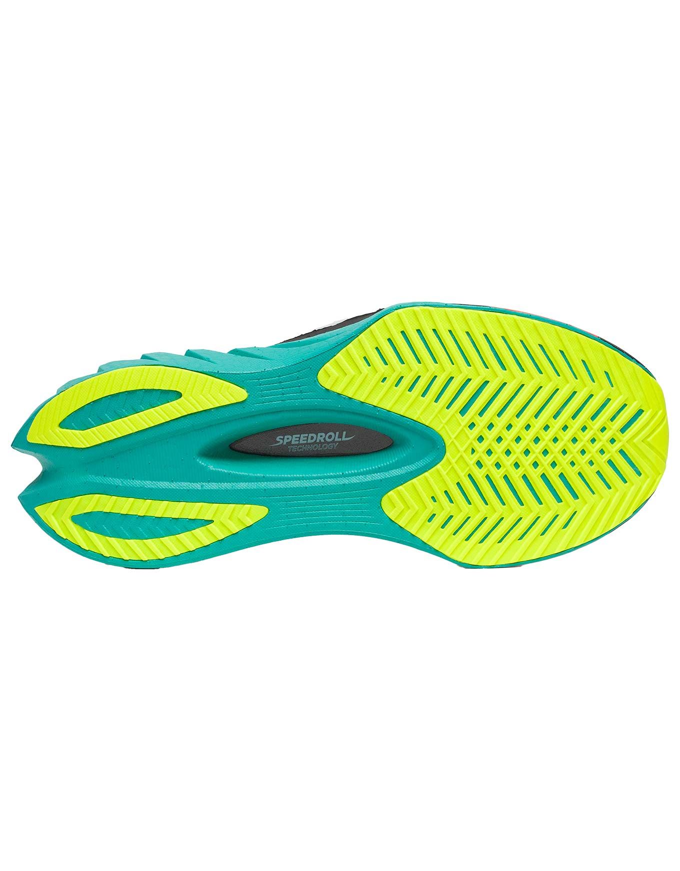 La technologie SpeedrollLa transition est à la fois rapide et souple grâce à la géométrie courbe de la semelle intermédiaire qui entraîne naturellement le pied vers l’avant ; la fatigue s’en trouve diminuée et l’économie d’énergie sur les parcours longs optimisée.