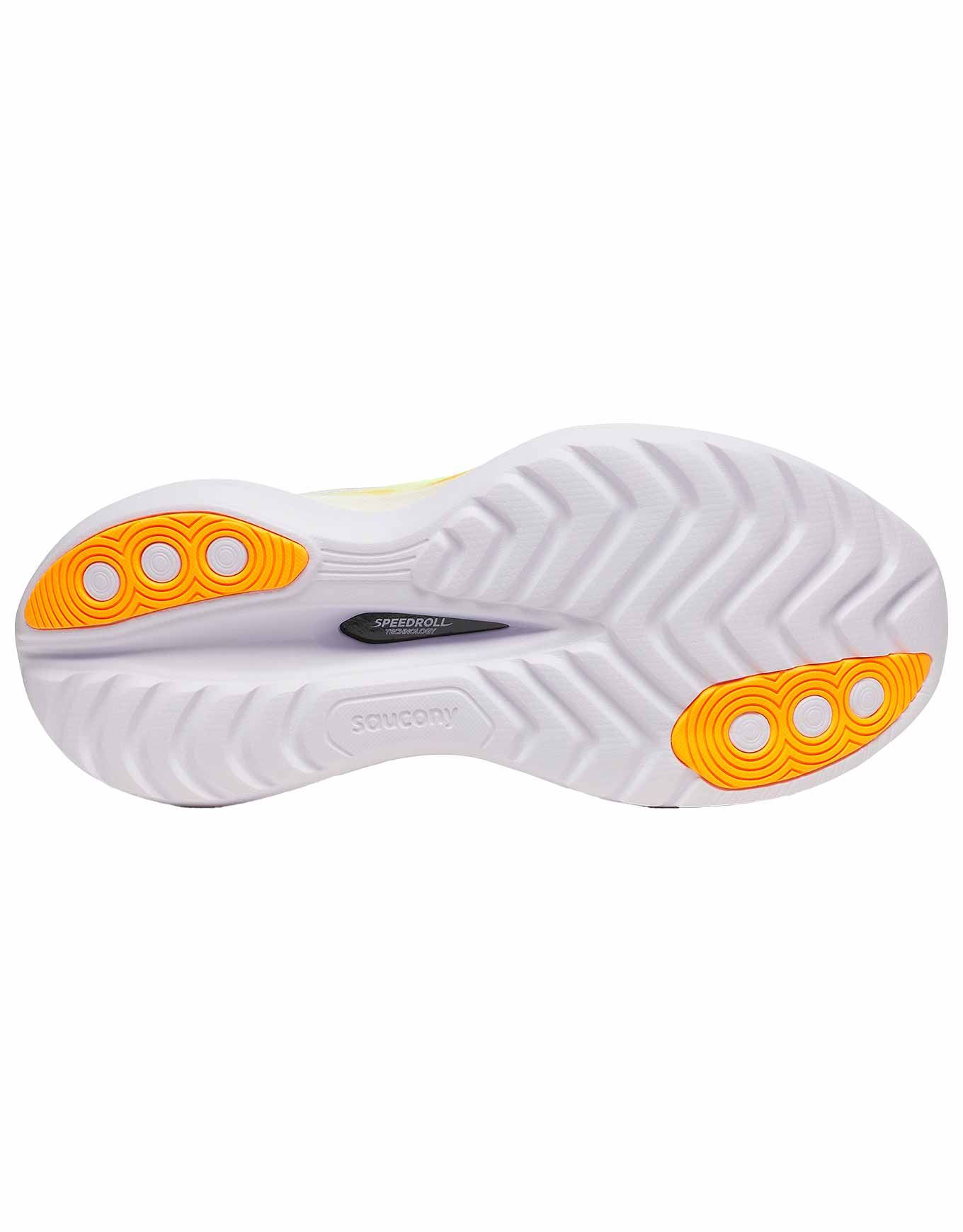 | SPEEDROLL | Technologie combinant amorti généreux et rigidité à l’avant-pied pour générer une poussée naturelle à chaque pas. Elle assure une réponse immédiate et rend la foulée plus rapide sans effort additionnel. |
