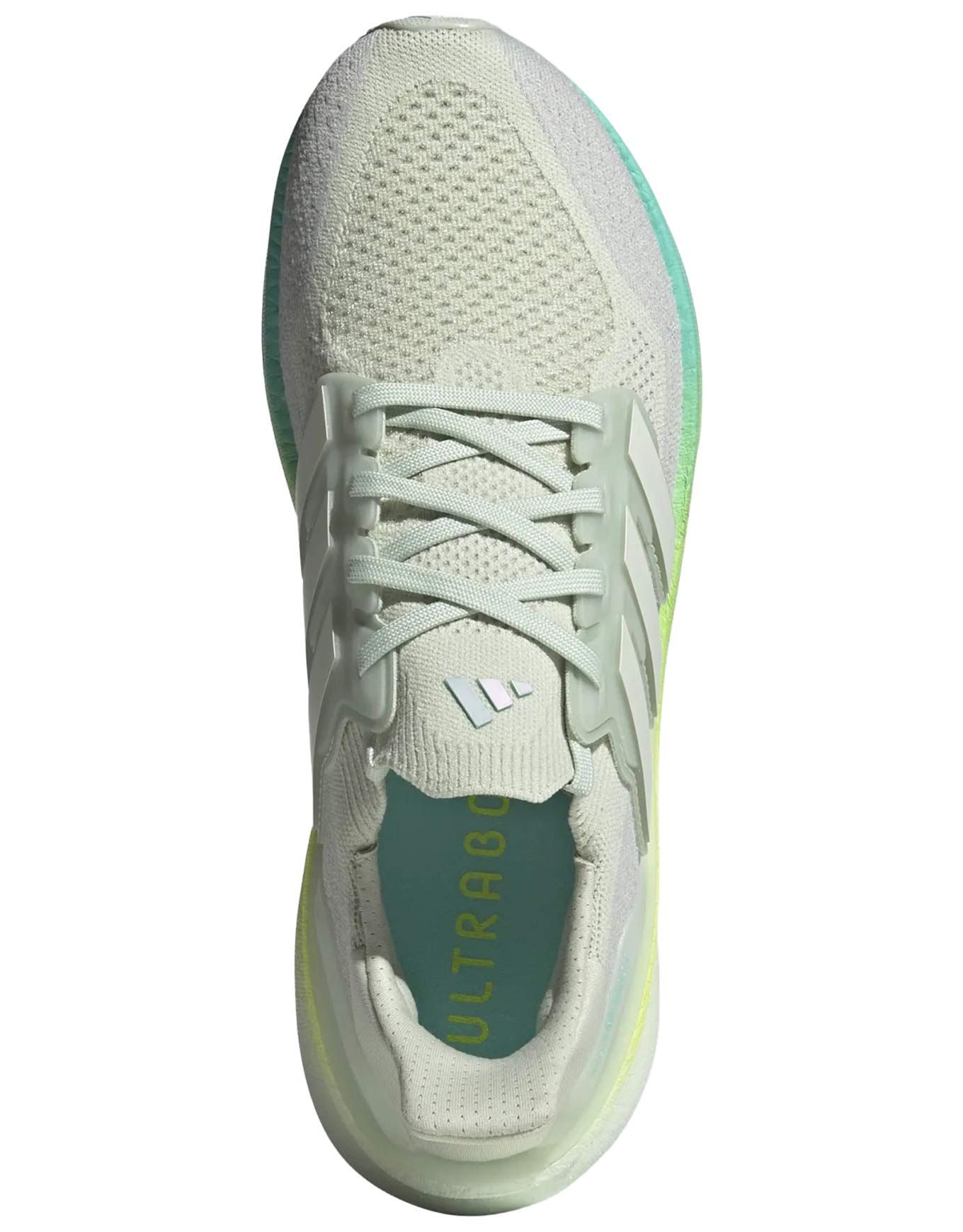 Chaussure de running Adidas Ultraboost 5 Linen Green/Crystal Jade/Pulse Lime, tige Primeknit respirante, semelle LIGHT BOOST V2 et Torsion System pour un amorti dynamique, adhérence Continental Stretchweb, minimum 20 % matériaux recyclés.