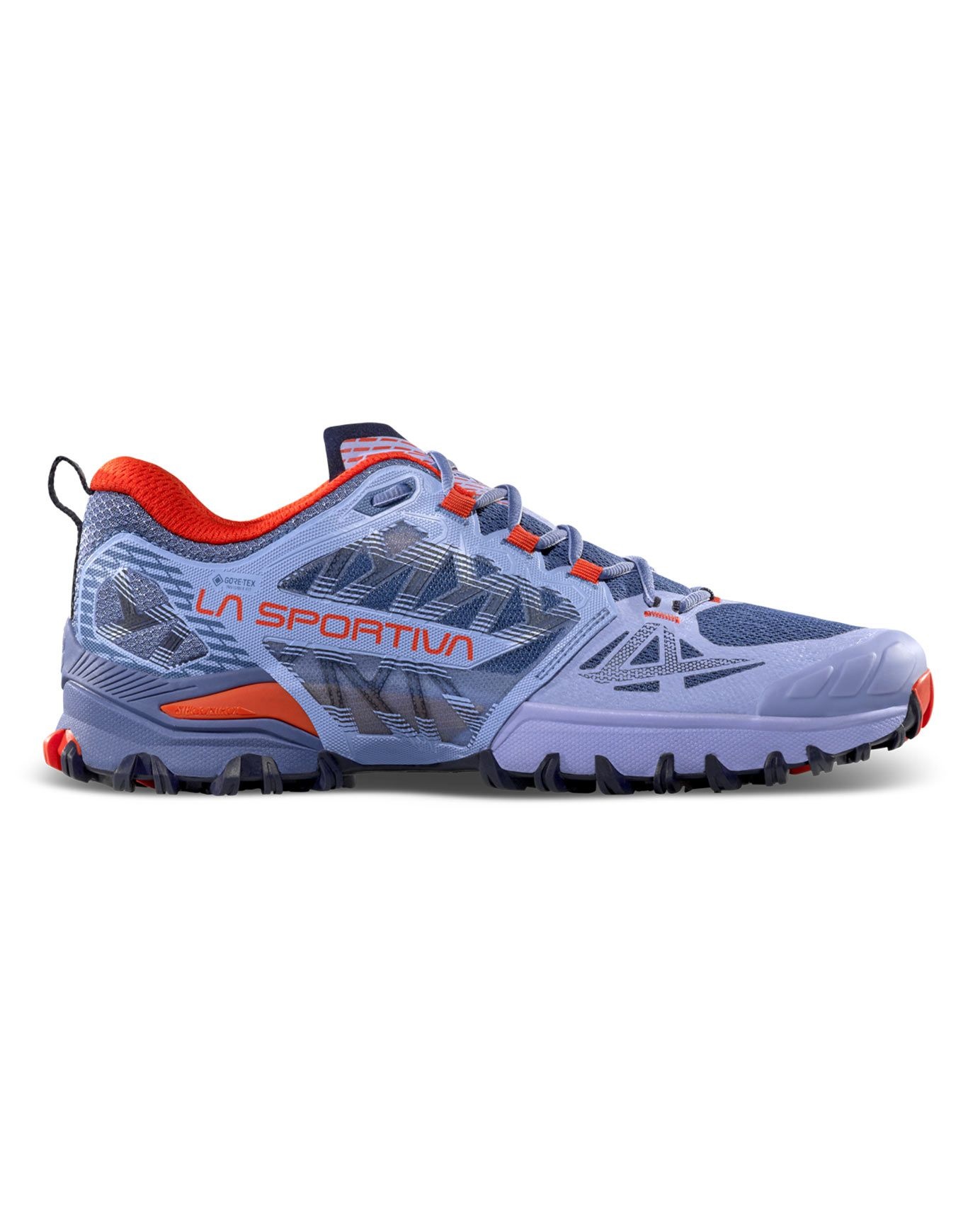 La Sportiva Bushido III GTX Stone-Blue/Moonlight est une chaussure de trail femme technique, légère et adhérente, dotée d’une membrane GORE-TEX Invisible Fit pour rester au sec sur moyennes et longues distances.