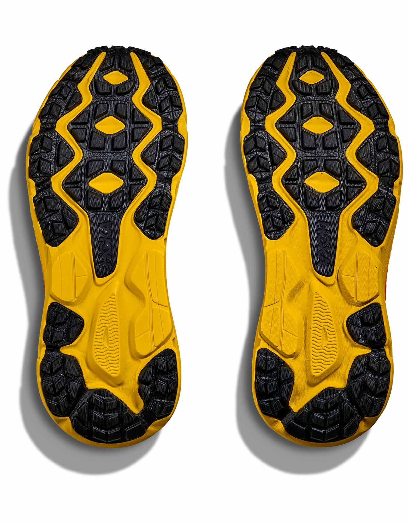Une refonte complète a été opérée sur cette édition des Challenger 7. L’association d’une tige mesh et d’une nouvelle mousse CMEVA d’une grande douceur permet d’absorber les chocs tout en assurant une stabilité réelle. La semelle extérieure caoutchoutée a également fait l’objet d’une révision : l’adjonction de crampons compacts et rapprochés au centre, complétés par des crampons plus imposants et agressifs sur les bords, optimise l’adhérence quelle que soit la surface.