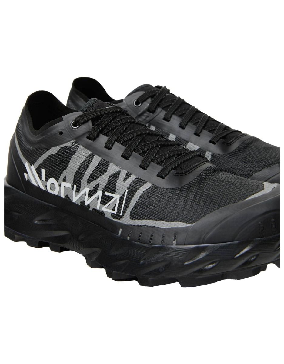 Chaussures de trail femme NNormal Kjerag Brut W : semelle Vibram Litebase Megagrip, tige Matryx Jacquard, crampons 6,5 mm, légèreté, adhérence et dynamisme sur terrain instable.
