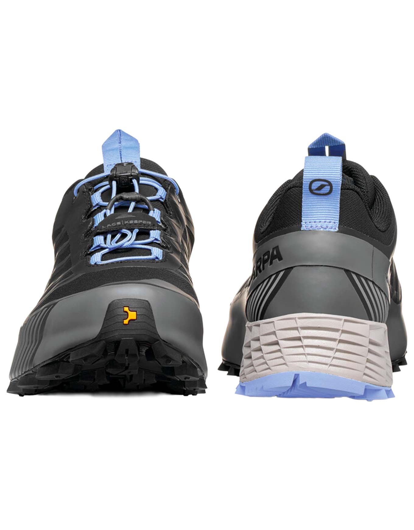 Les Ribelle Run 2 GTX Black Lavender sont des chaussures de trail conçues pour femme par la marque Scarpa. Héritière de la célèbre gamme Ribelle, dédiée à l’alpinisme léger et contemporain, cette version trail s’adresse aux coureuses exigeantes sur des parcours de courte à moyenne distance, en course ou en skyrunning. Elle offre un chaussant technique et précis, avec une tige intégrant la construction Sock-Fit LW qui limite les infiltrations extérieures. L’empeigne sans couture associe un mesh enveloppant à un film en TPU, garantissant maintien et résistance à l’abrasion. Une bande en EVA, inspirée des chaussons d’escalade et des modèles d’alpinisme, relie l’avant-pied au talon pour une stabilité renforcée. Une membrane GORE-TEX assure une protection fiable contre les intempéries, tandis que la semelle Presa, spécifiquement développée par Scarpa, offre une adhérence optimale sur terrain sec ou humide. Les crampons sous la plante assurent accroche et précision sur sentiers techniques. Les Ribelle Run allient légèreté et performance, idéales pour les trails engagés. Nos conseils Comment choisir ses chaussures de trail ? Découvrir les collections Scarpa Mojito Ribelle Mescalito Vapor Zodiac Drago Découvrir les catégories associées Chaussures trail femme Trail/running Chaussures de trail