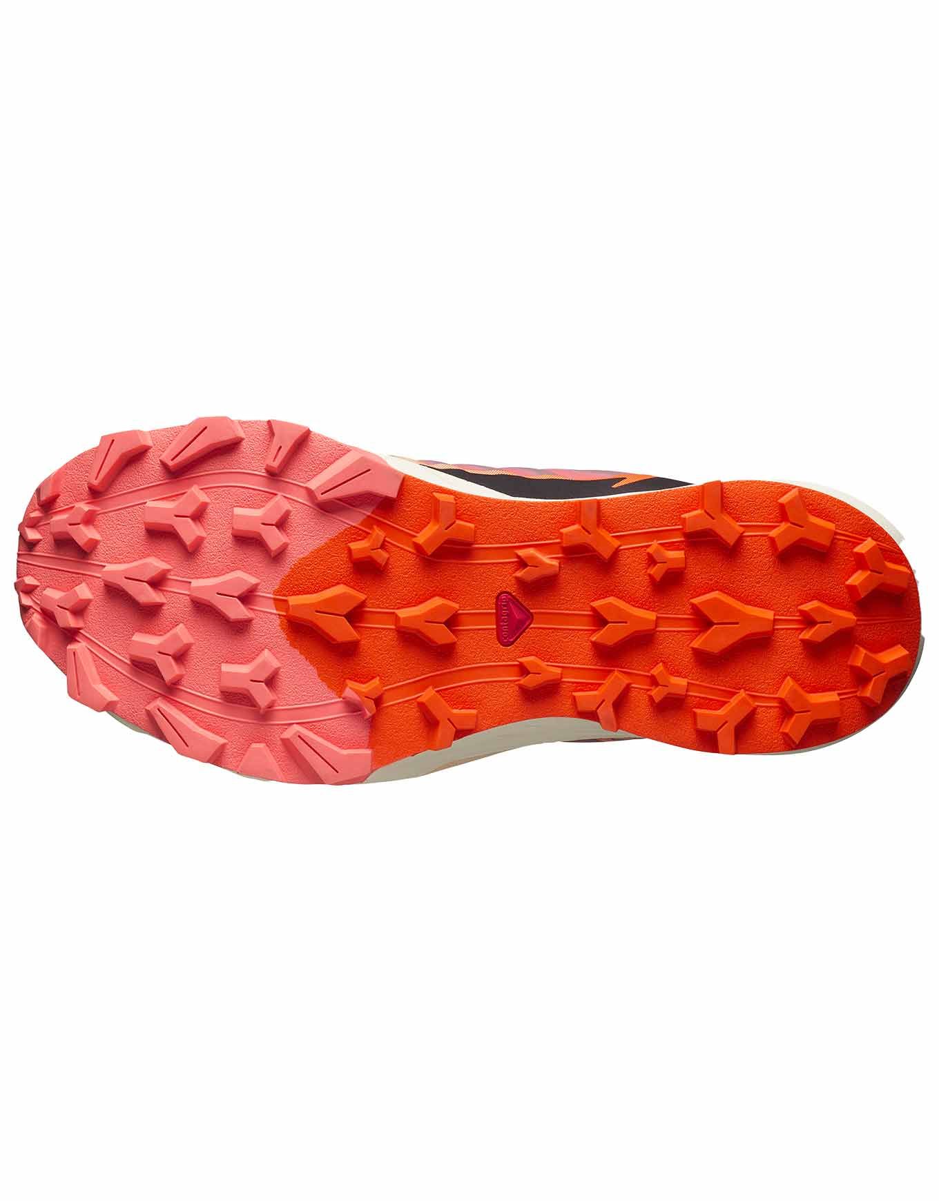 Chaussure de trail-running femme Salomon Thundercross Fusion Coral/Black/Red Orange, semelle All Terrain Contagrip® 5 mm, maintien SensiFit™, laçage Quicklace™, amorti EnergyFoam.