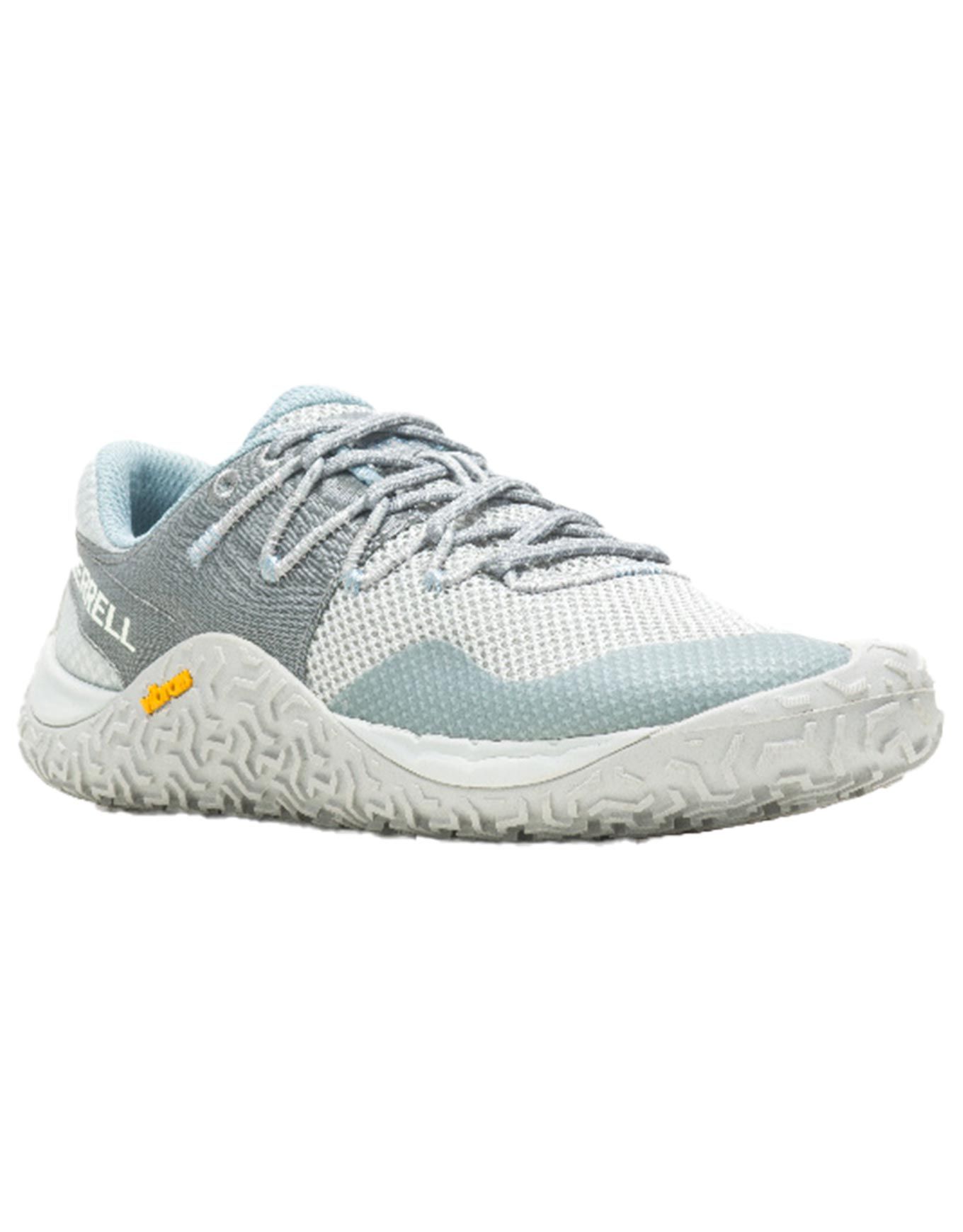 Chaussures de trail femme Merrell Trail Glove 7 : semelle Vibram EcoStep, adhérence sèche/humide, mesh 100 % recyclé, construction Barefoot 2, foulée naturelle et réactive.