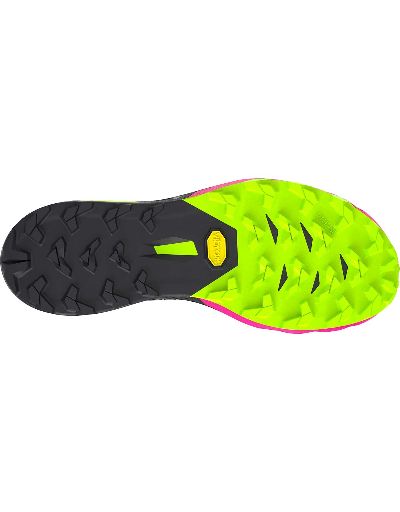 La semelle extérieure Vibram® Litebase assure une adhérence fiable sans alourdir la chaussure ni compromettre sa longévité. Par rapport à la première version, le rembourrage a été réduit pour alléger la masse tout en préservant une protection performante.