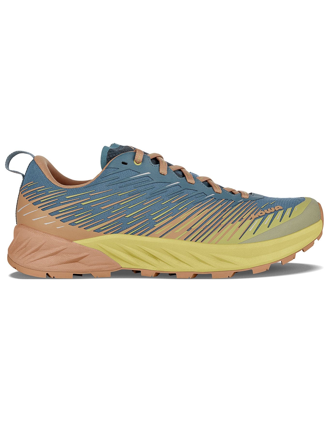 Lowa Amplux Rust/Petrol, chaussure de trail running homme polyvalente, associe légèreté, semelle à crampons profonds et plaque carbone pour un rebond énergique sur tout terrain.