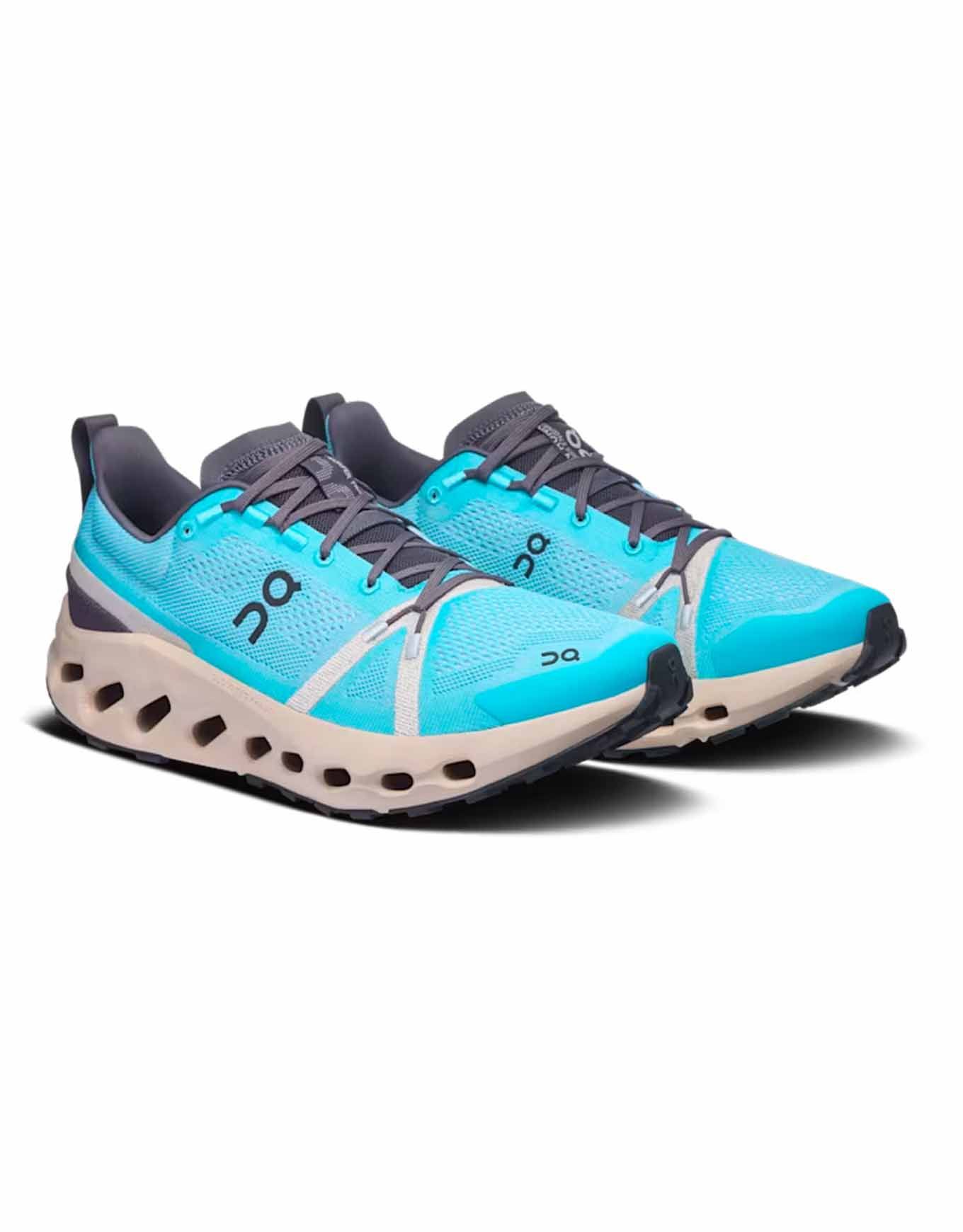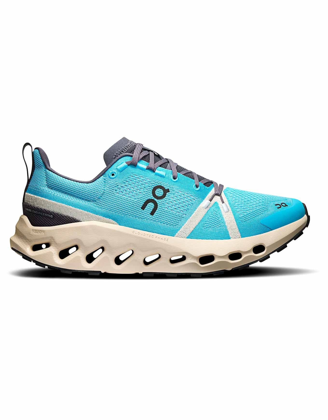 Chaussure de trail running homme On Running Cloudsurfer Trail Horizon/Cream, conçue pour l’entraînement et la compétition : amorti CloudTec Phase®, adhérence Missiongrip™, mesh respirant en polyester recyclé et talon stabilisant en EVA.