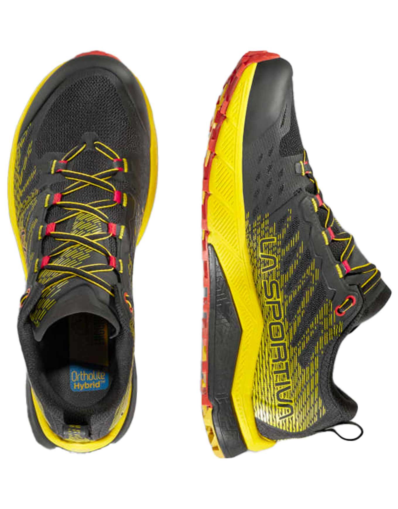 La Sportiva Jackal II, chaussure de trail running homme ultra-légère (275 g), allie amorti Infinitoo et semelle FriXion Red pour confort, adhérence et protection sur ultra-marathons.