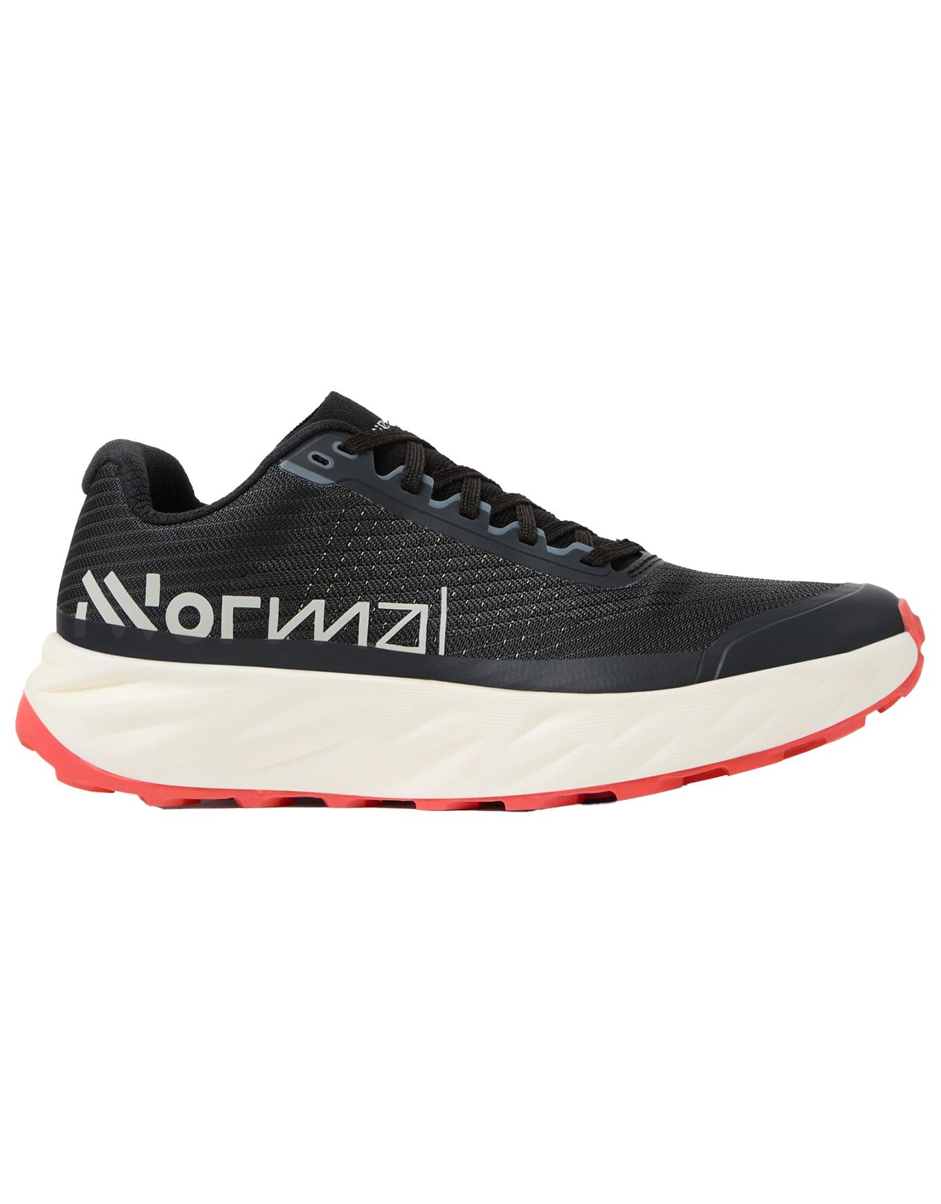 Chaussure de trail homme NNormal Kjerag 2.0 Black : semelle intermédiaire EExpure+ pour rebond dynamique, semelle Vibram Litebase Megagrip 3,5 mm, tige Matryx Light Jacquard respirante et résistante.