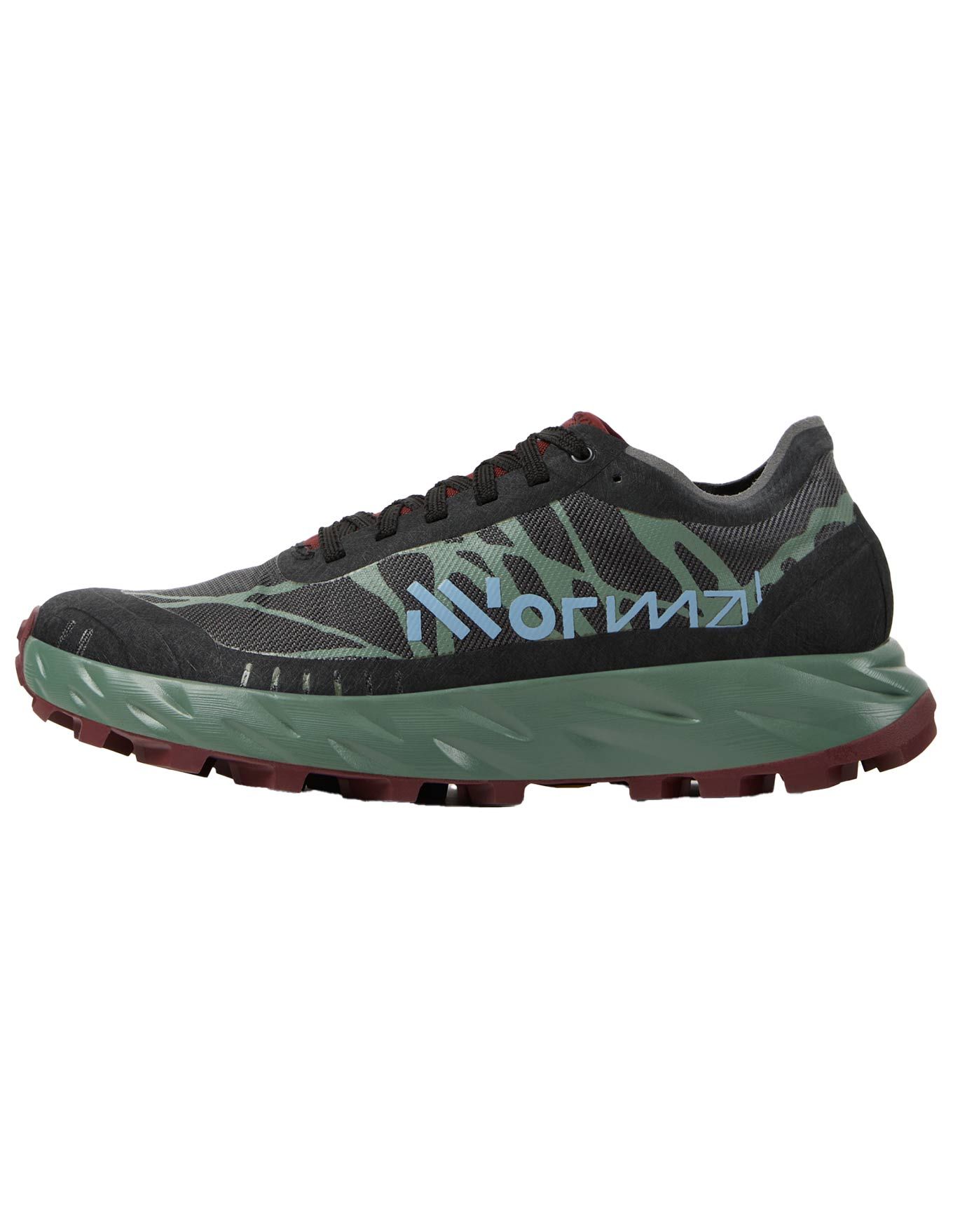Chaussures de trail homme NNormal Kjerag Brut : semelle Vibram Litebase Megagrip, mousse EExpure, tige Matryx Jacquard, crampons 6,5 mm, légères et accrocheuses pour terrains instables.