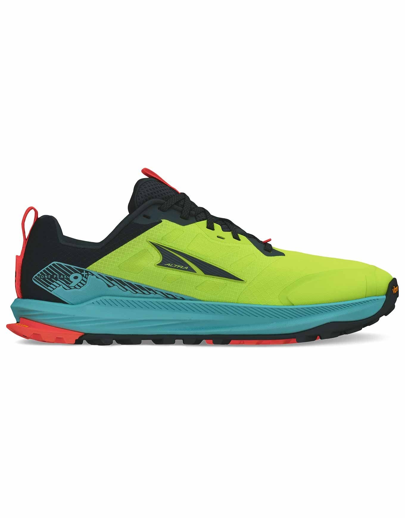 Chaussure de trail homme Altra Lone Peak 9+ Lime, semelle Vibram Megagrip, mousse Altra EGO, protection StoneGuard, mesh ripstop durable, drop zéro, fit naturel.