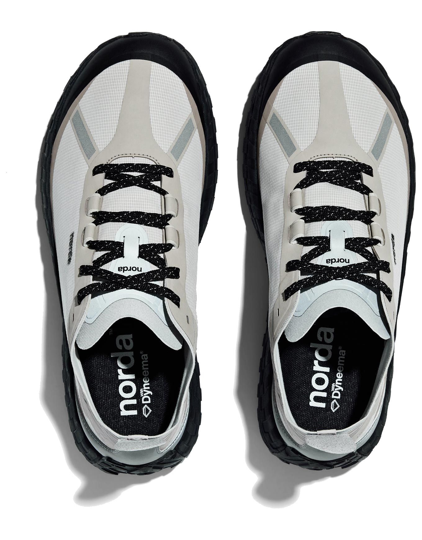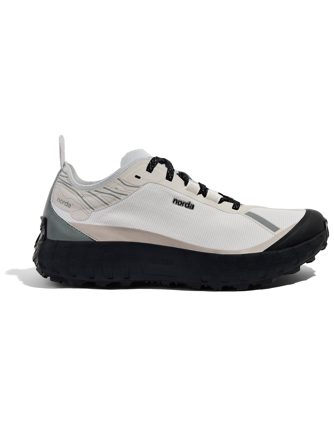 Chaussure de trail Norda 001 M pour homme, tige Dyneema® biosourcée, semelle Vibram® SLE amortissante et Litebase® allégée, caoutchouc MegaGrip® adhérent, ajustement stable.
