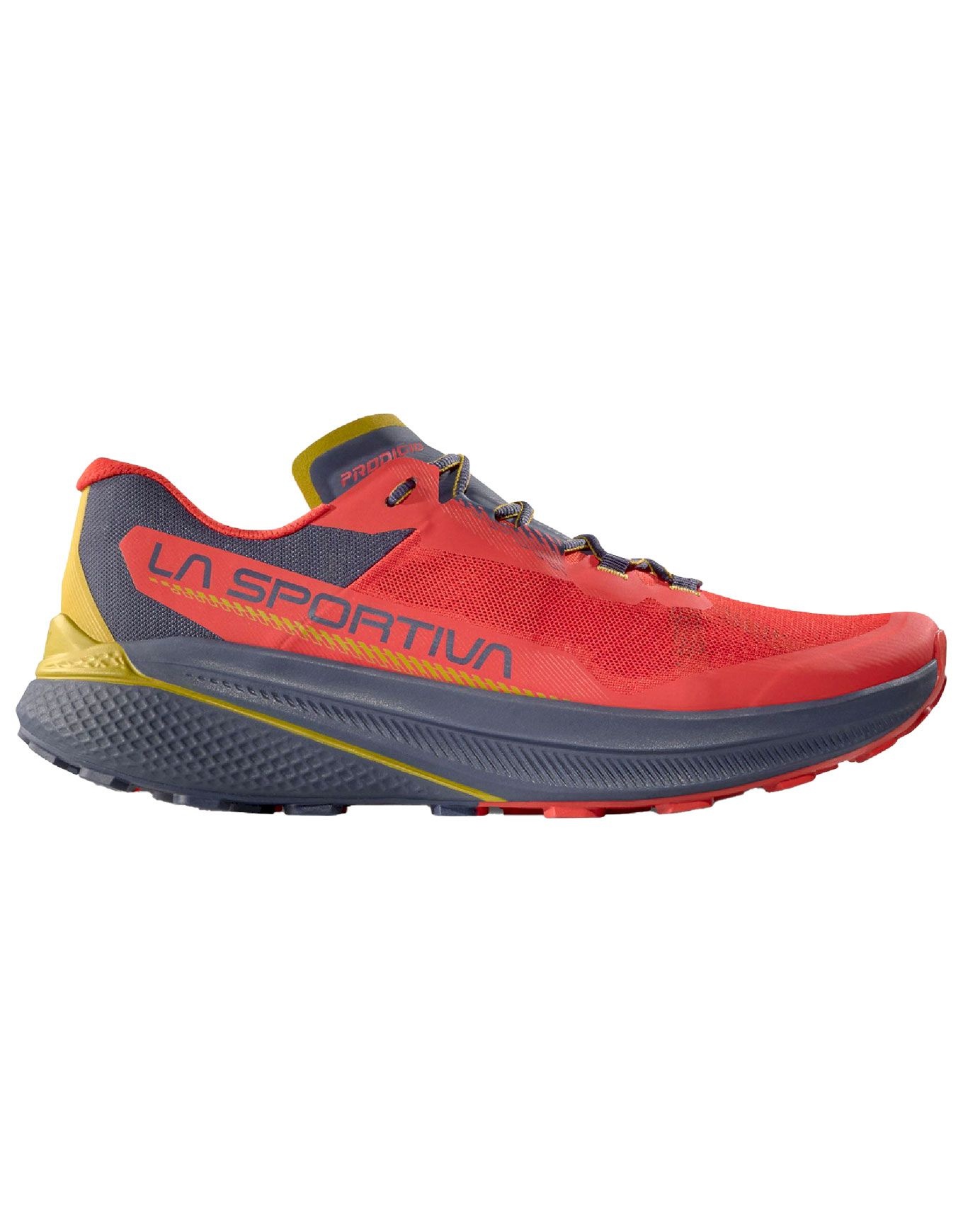La Sportiva Prodigio Mountain Red/Night Sky est une chaussure technique de trail pour homme conçue pour l’ultra-trail, offrant légèreté, confort prolongé et stabilité sur sentiers techniques grâce à sa tige aérée, sa semelle FriXion® amortissante et son rocker dynamique.