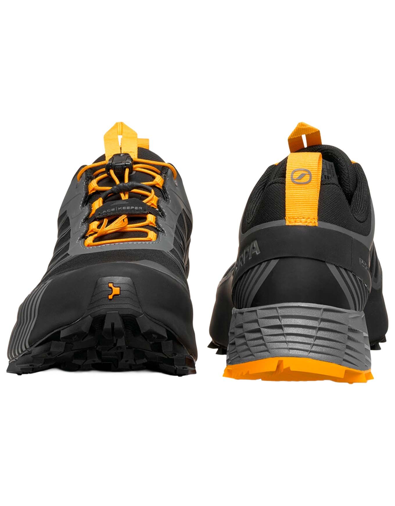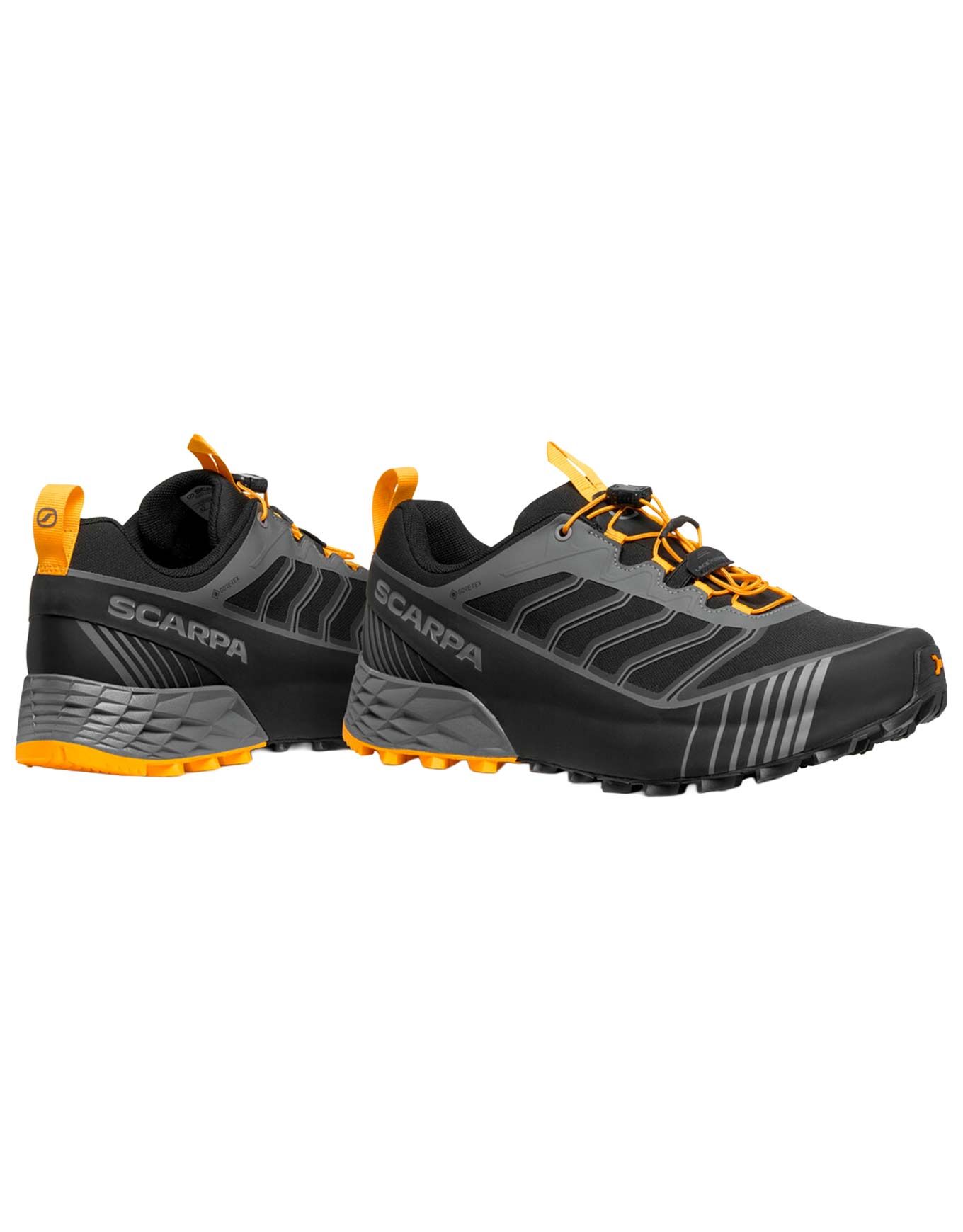 Les Ribelle Run 2 GTX Dark Gray Saffron sont des chaussures de trail conçues pour les hommes par la marque Scarpa. Héritière des modèles précédents, cette version reprend le nom de la célèbre gamme Ribelle, référence en alpinisme léger et moderne, et ce n’est pas un hasard. Elle est spécialement conçue pour répondre aux besoins techniques des coureurs sur des parcours de trail ou de skyrunning de courte à moyenne distance. Cette exigence se traduit par un chaussant très précis. Scarpa a intégré une tige utilisant la technologie Sock-Fit LW, offrant une protection efficace contre les éléments extérieurs. La partie supérieure de la tige est sans couture, avec un mesh enveloppant le pied, renforcé par un film en TPU pour un meilleur maintien et une résistance accrue à l’abrasion. Une bande en EVA, inspirée des chaussons d’escalade et des chaussures d’alpinisme, relie la semelle intermédiaire à l’avant du pied et au talon, garantissant une stabilité optimale. La membrane GORE-TEX assure une protection fiable contre les intempéries, permettant de courir dans toutes les conditions. La Ribelle Run est dotée de la nouvelle semelle Presa, développée par Scarpa, offrant une adhérence exceptionnelle sur sol sec ou humide. Chaque semelle est adaptée à l’usage spécifique de la chaussure. Sous le pied, des crampons assurent une traction et une précision maximales. Les Ribelle Run sont des chaussures légères et techniques, idéales pour les trailleurs exigeants à la recherche de performance sur terrains difficiles. Nos conseils Comment choisir ses chaussures de trail ? Découvrir les collections Scarpa Mojito Ribelle Mescalito Vapor Zodiac Drago Découvrir les catégories associées Chaussures trail homme Trail/running Chaussures de trail
