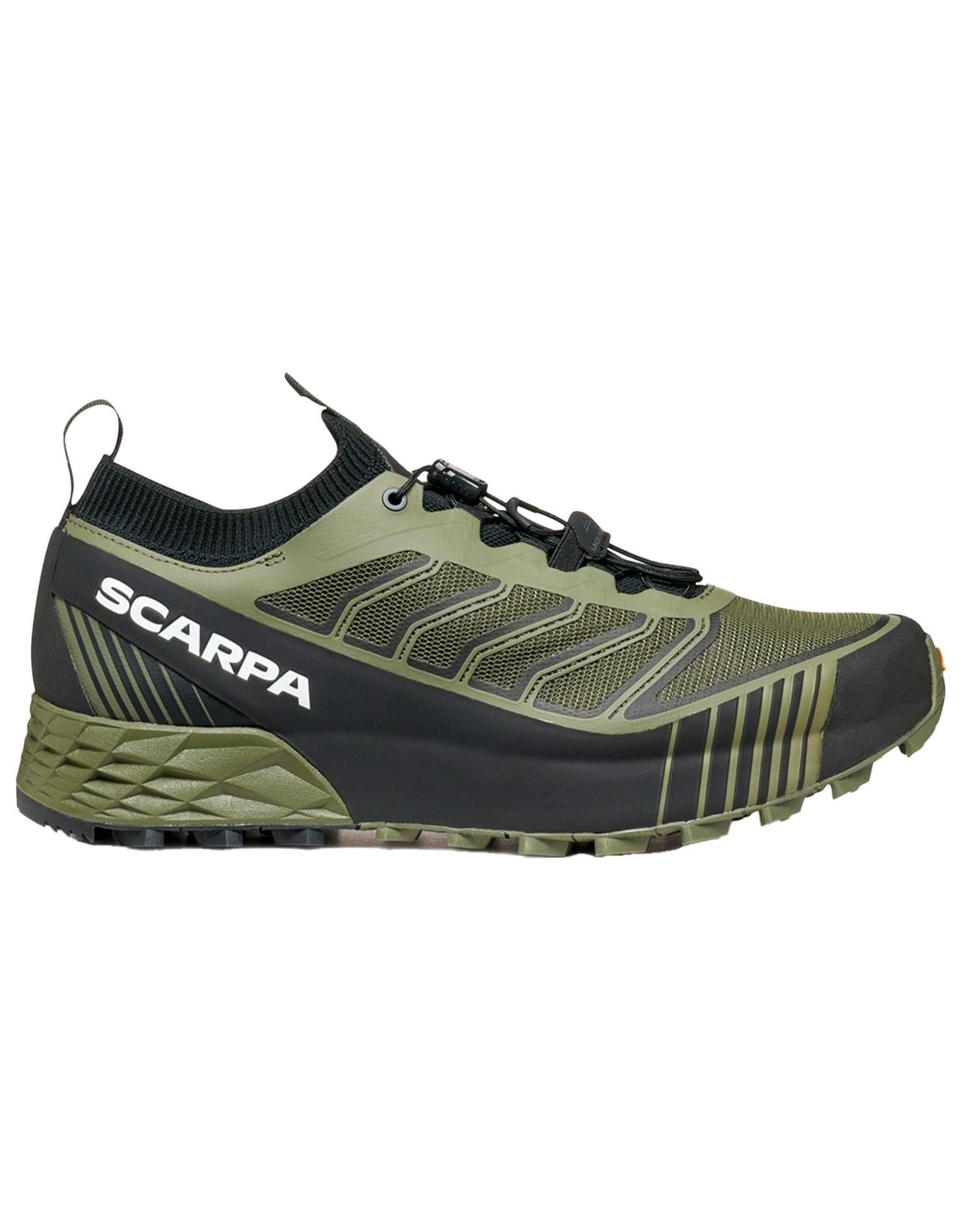 La Ribelle Run 2 Olive Black constitue la déclinaison masculine d’une chaussure de trail Scarpa qui s’inspire de l’emblématique ligne Ribelle, reconnue dans l’alpinisme léger et contemporain. Destinée aux compétitions de trail et de skyrunning sur courtes et moyennes distances, elle assure un ajustement d’une précision extrême capable de satisfaire les exigences techniques les plus rigoureuses. La construction Sock-Fit LW équipe la tige : un mesh sans couture, enveloppé d’une pellicule TPU, empêche l’intrusion de gravillons tout en améliorant le maintien et la résistance à l’usure. Une bride en EVA, issue des chaussons d’escalade et des bottes d’alpinisme, assure la connexion entre l’avant-pied et le talon pour stabiliser latéralement le pied sur la semelle intermédiaire. Développée en interne par Scarpa, la toute nouvelle semelle Presa offre une adhérence fiable sur terrains secs et humides ; des crampons positionnés stratégiquement assurent accroche et précision à chaque foulée. Légères et performantes, les Ribelle Run 2 séduiront les traileurs exigeants évoluant sur sentiers techniques et escarpés. Nos conseils Comment choisir ses chaussures de trail ? Découvrir les collections Scarpa Mojito Ribelle Mescalito Vapor Zodiac Drago Découvrir les catégories associées Chaussures trail homme Trail/running Chaussures de trail