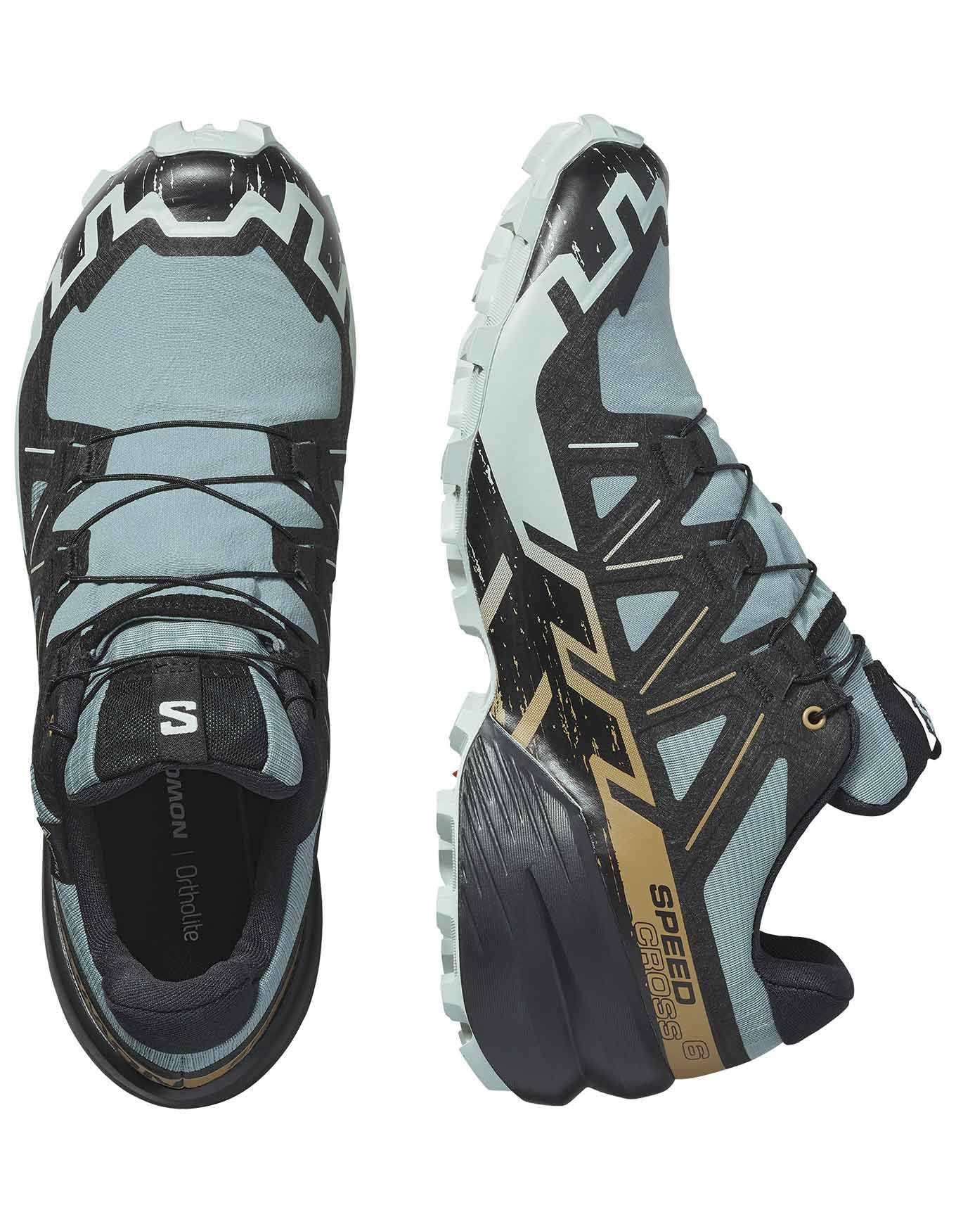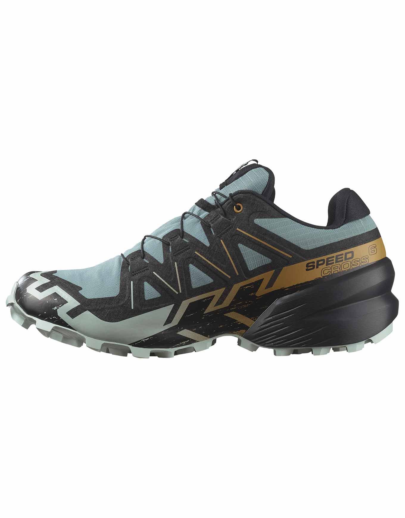 Chaussure de trail-running homme Salomon Speedcross 6 GTX Trooper/Black, légère et stable, avec semelle Mud Contagrip®, membrane GORE-TEX, amorti EnergyCell™+ et laçage Quicklace™ pour une accroche et un confort optimaux sur terrains gras.